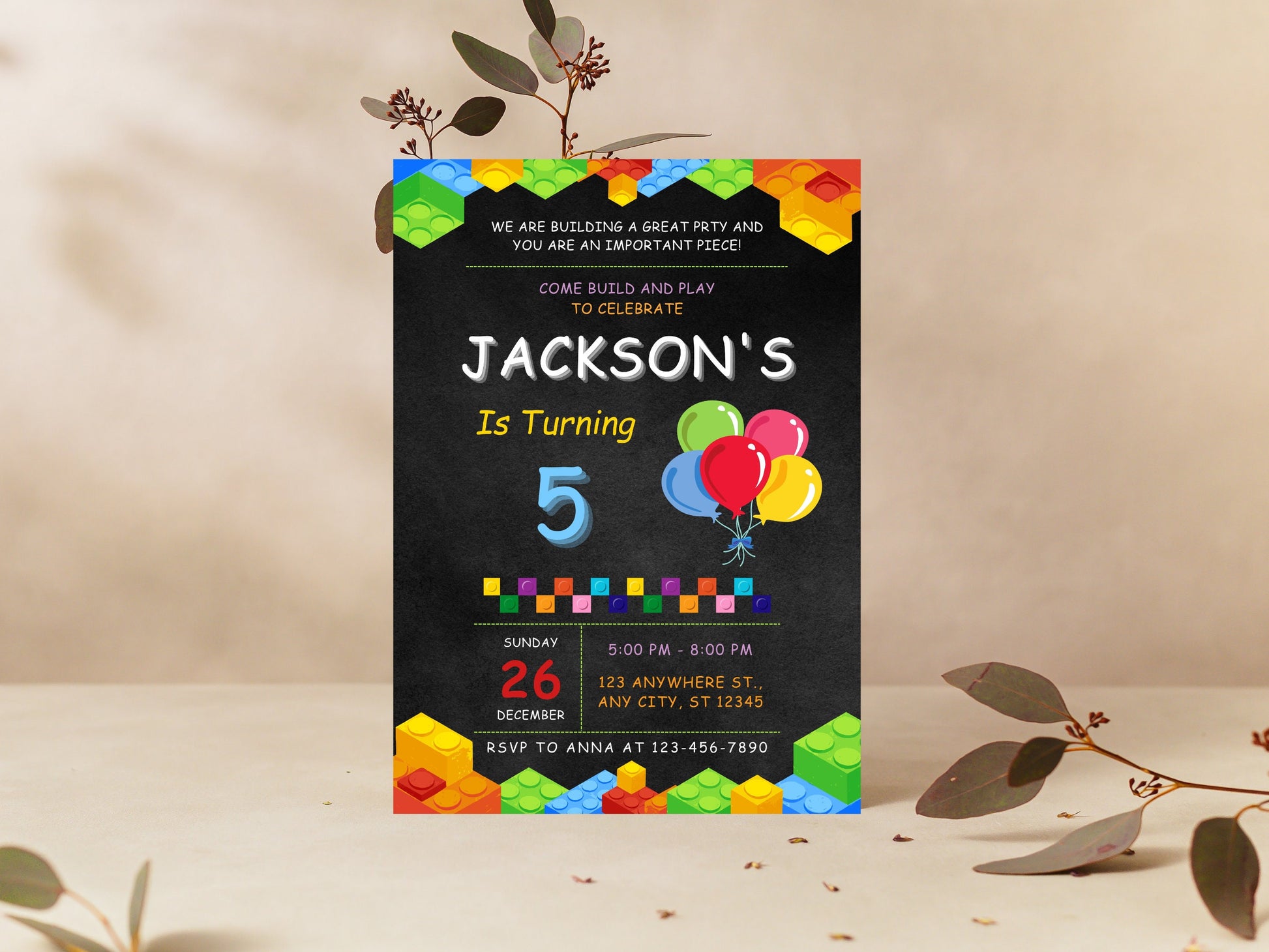 Building Blocks Birthday Invitation, Editable Kids Party Template (Digital Download)