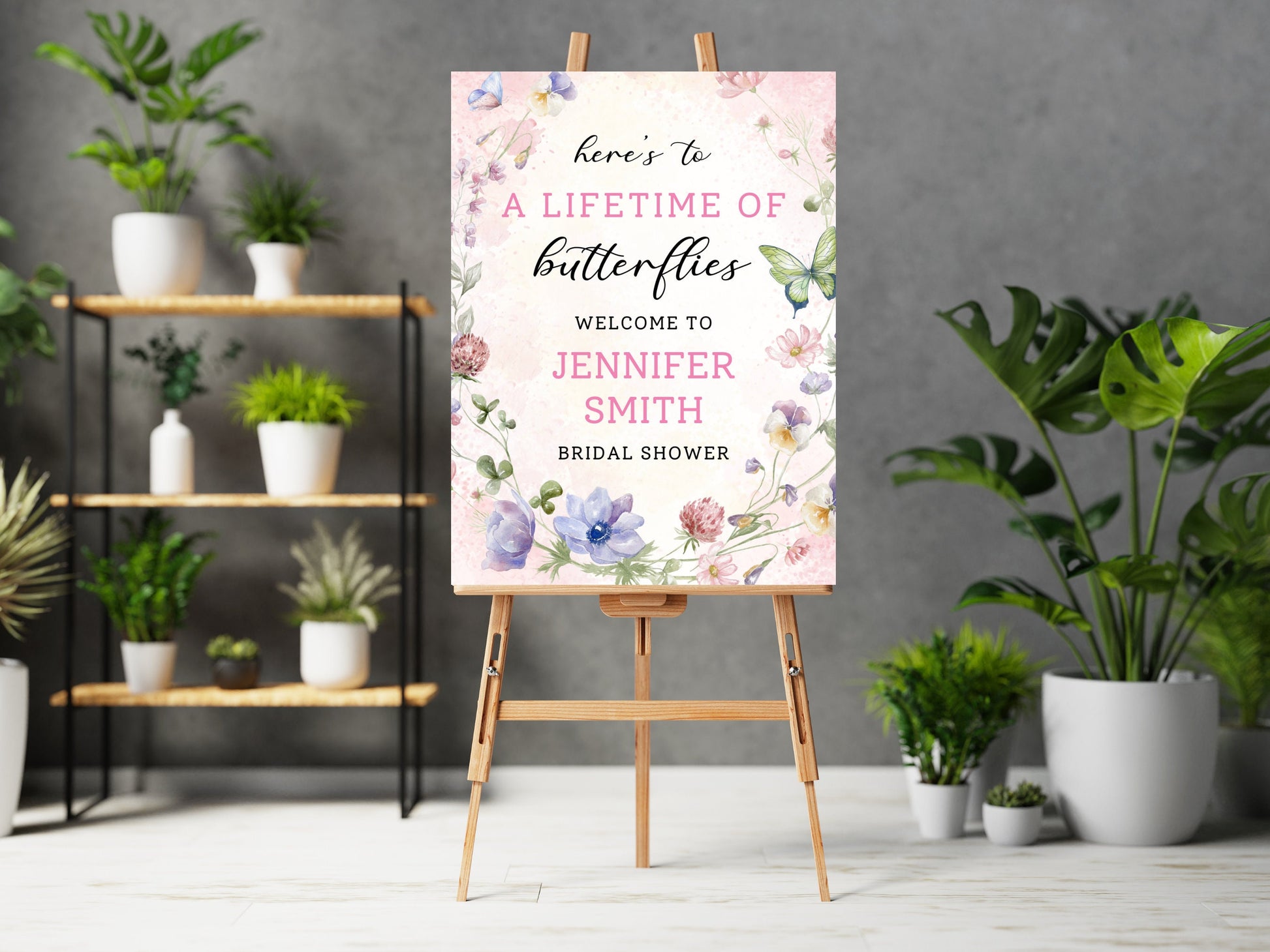 Here's To Lifetime Of Butterflies Welcome Sign, Bridal Shower Welcome Sign, Portrait Bridal Shower Welcome Sign Template, Digital Download