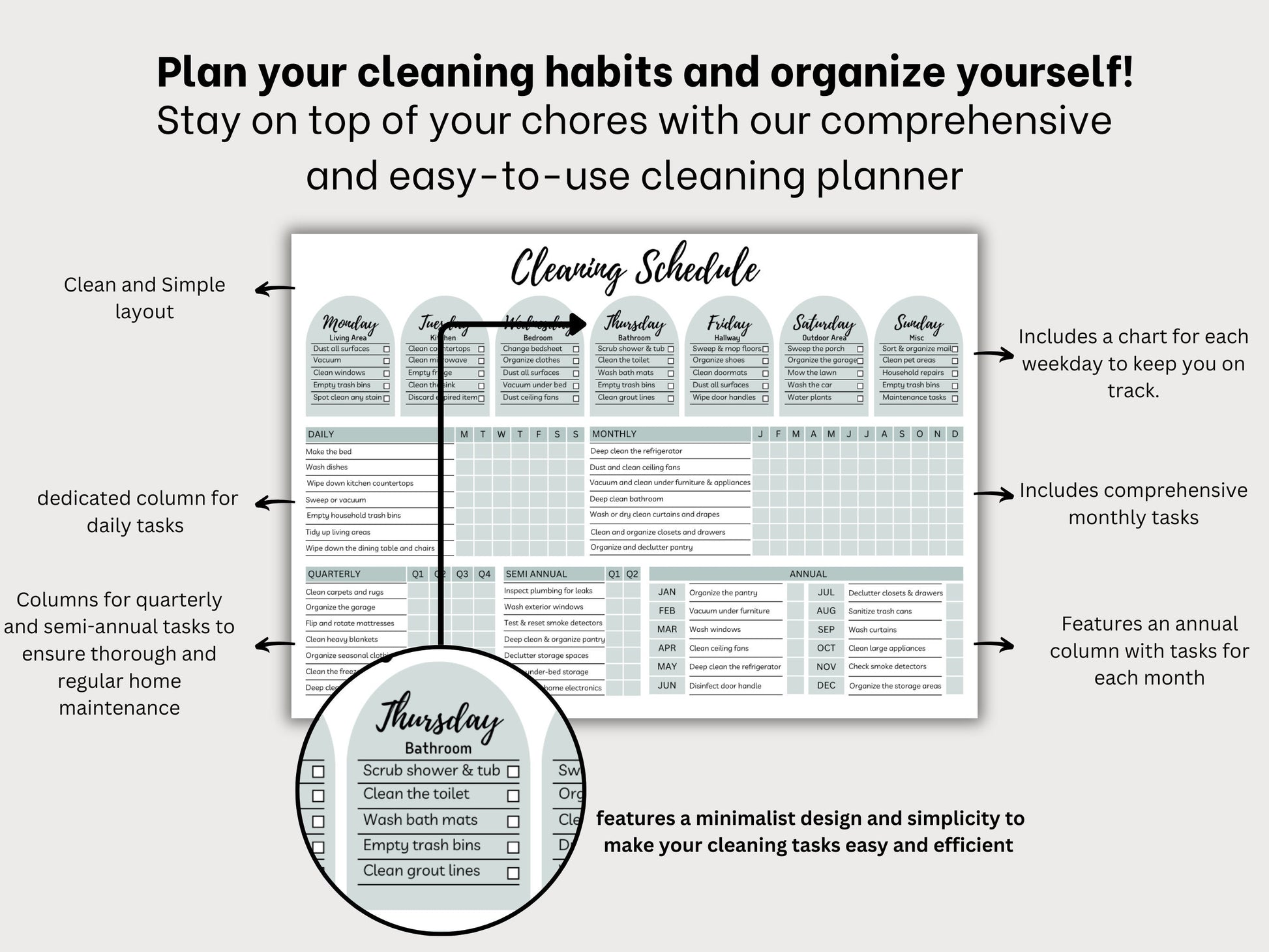 Comprehensive: Keep track of both daily and hard-to-remember cleaning duties, ensuring your home stays spotless and organized.