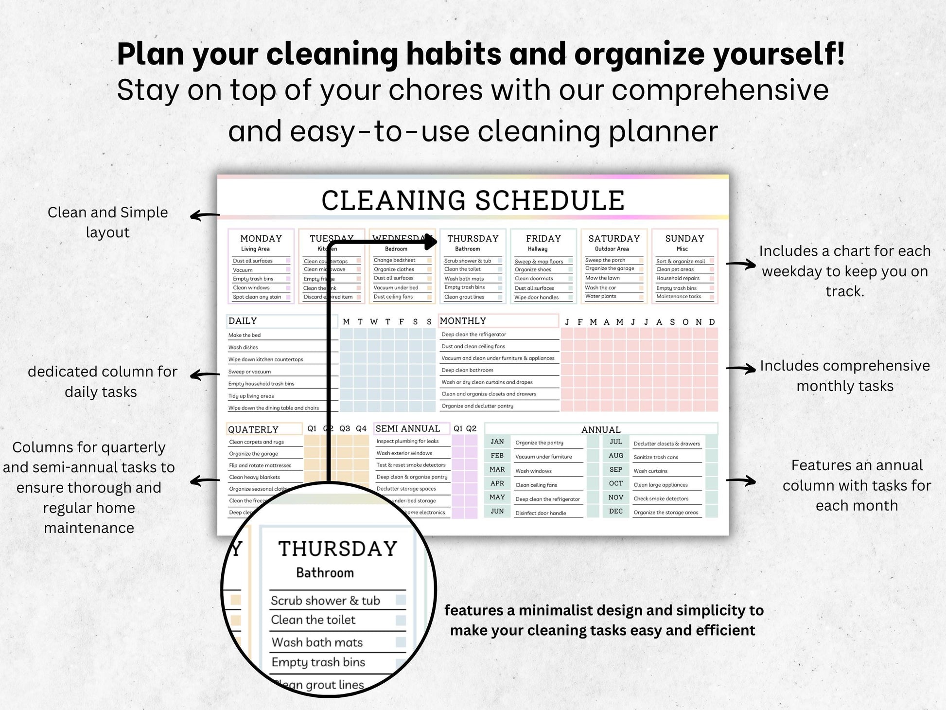 Comprehensive: Keep track of both daily and hard-to-remember cleaning duties, ensuring your home stays spotless and organized.