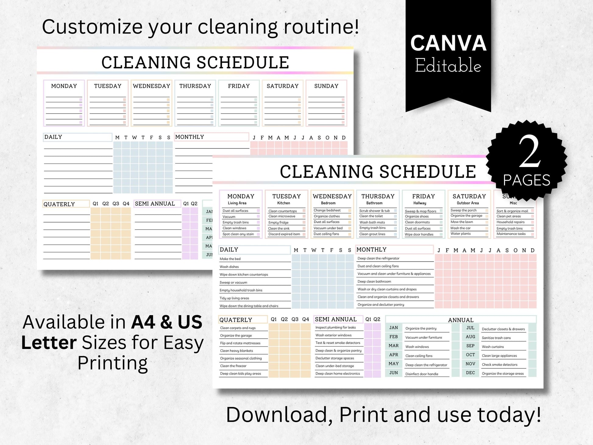 Cleaning Planner Checklist Bundle, Cleaning Schedule Planner, Daily Schedule Checklist, Household Chores Chart, Editable Cleaning Checklist