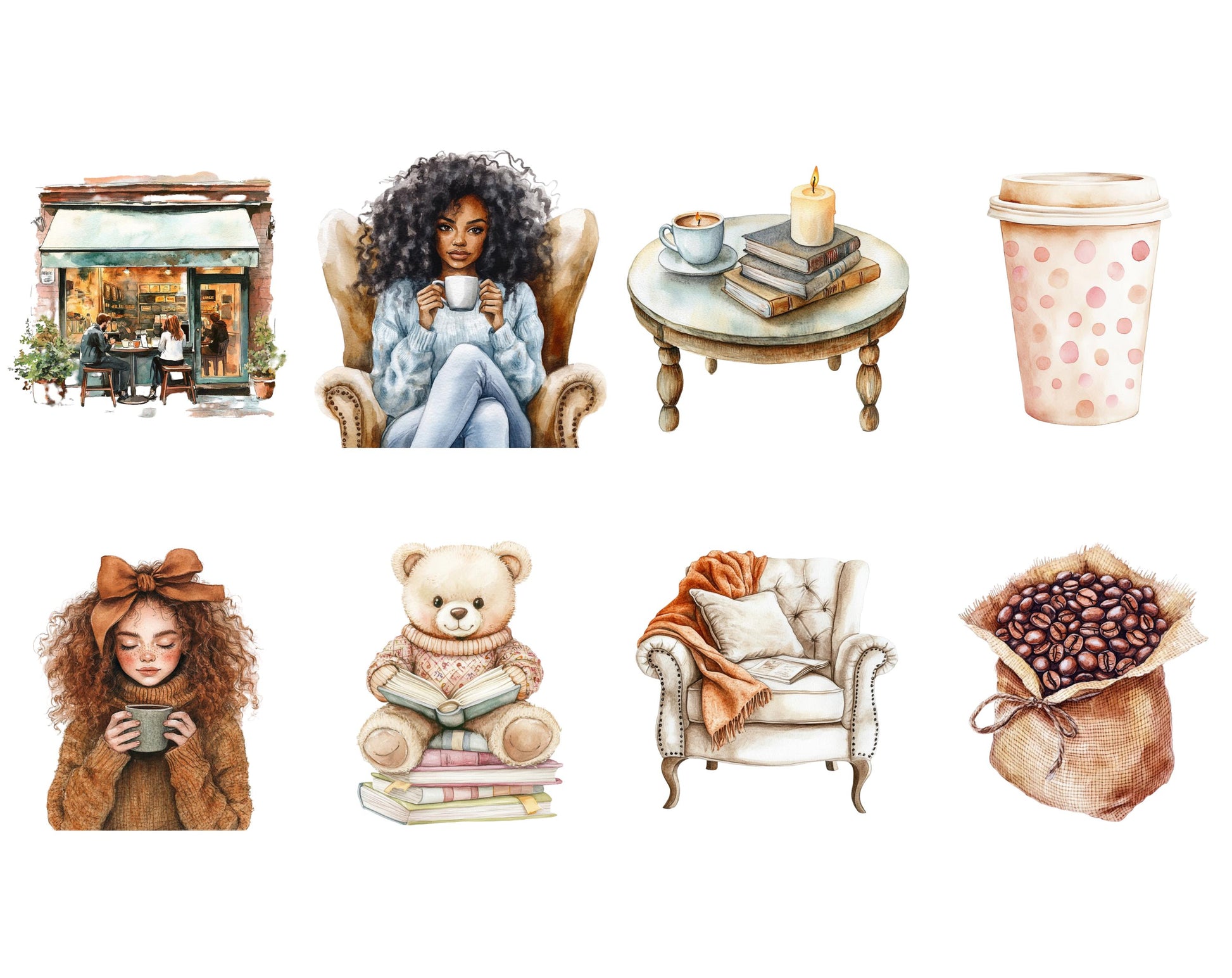 Coffee Lover Clipart Bundle, Watercolor Style (Digital Download)