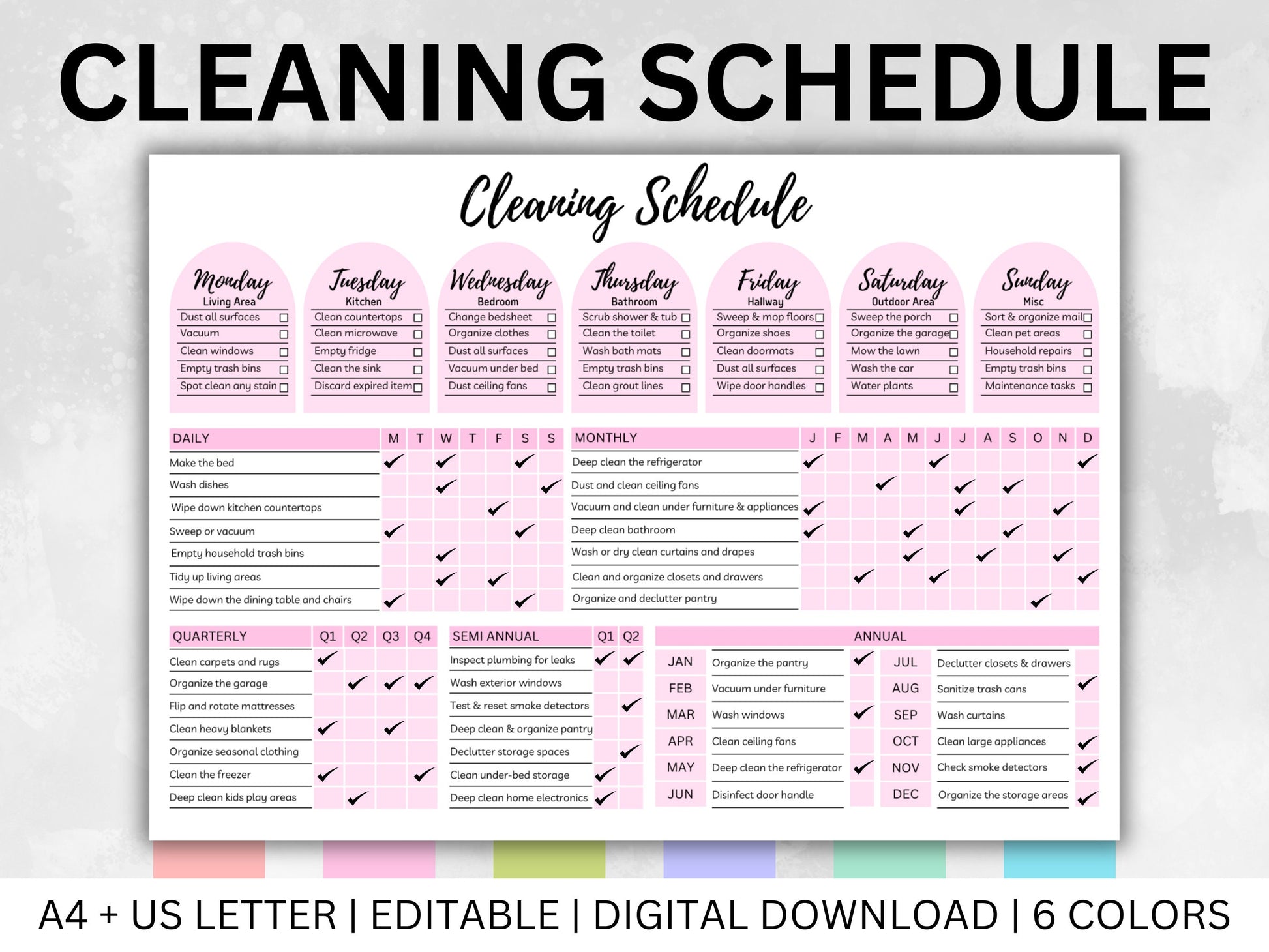 Cleaning Planner Checklist Bundle, Cleaning Schedule Planner, Daily Schedule Checklist, Household Chores Chart, Editable Cleaning Checklist