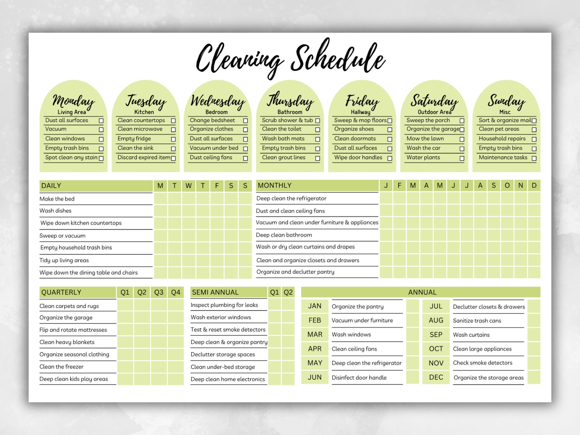 Comprehensive: Keep track of both daily and hard-to-remember cleaning duties, ensuring your home stays spotless and organized.