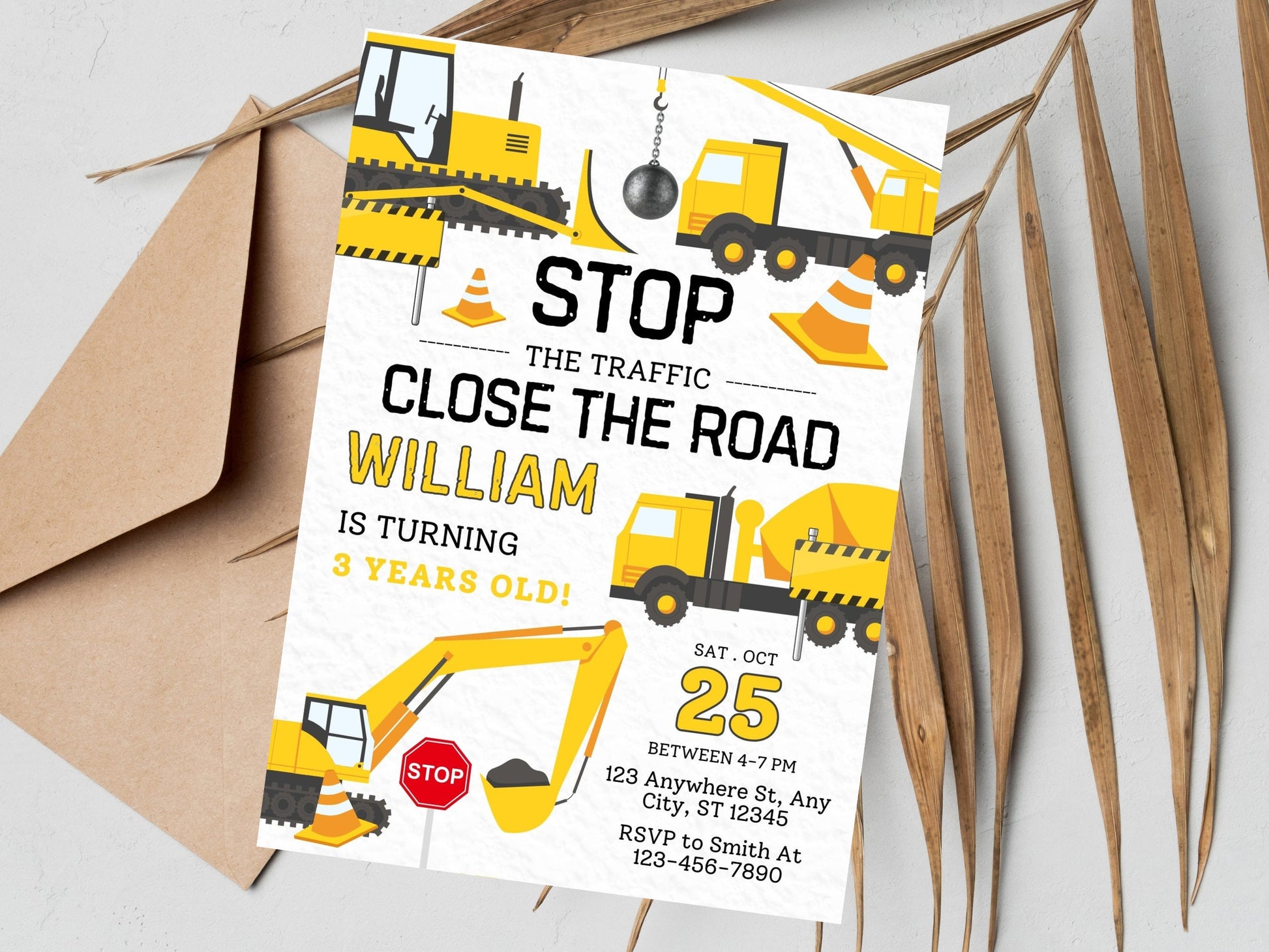 Construction Truck Birthday Invitation Template, Editable (Instant Download)