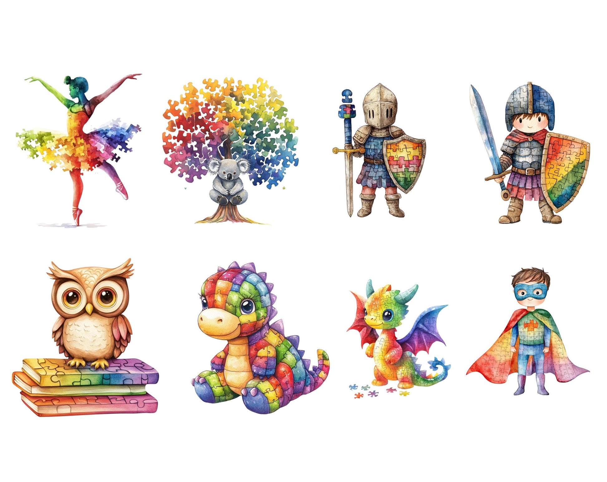 This set of 60 high-quality Cute Autism Awareness clipart illustrations is ideal for infusing creativity and charm into any project. Showcasing high-resolution graphics with transparent backgrounds, these whimsical images are perfect for a variety of uses, from children's party invitations to nursery decorations, scrapbooking, and beyond. Whether you’re designing personalized gifts, digital planners, or social media graphics, these charming and adaptable clipart illustrations are guaranteed to elevate your work and bring a delightful flair to every project.