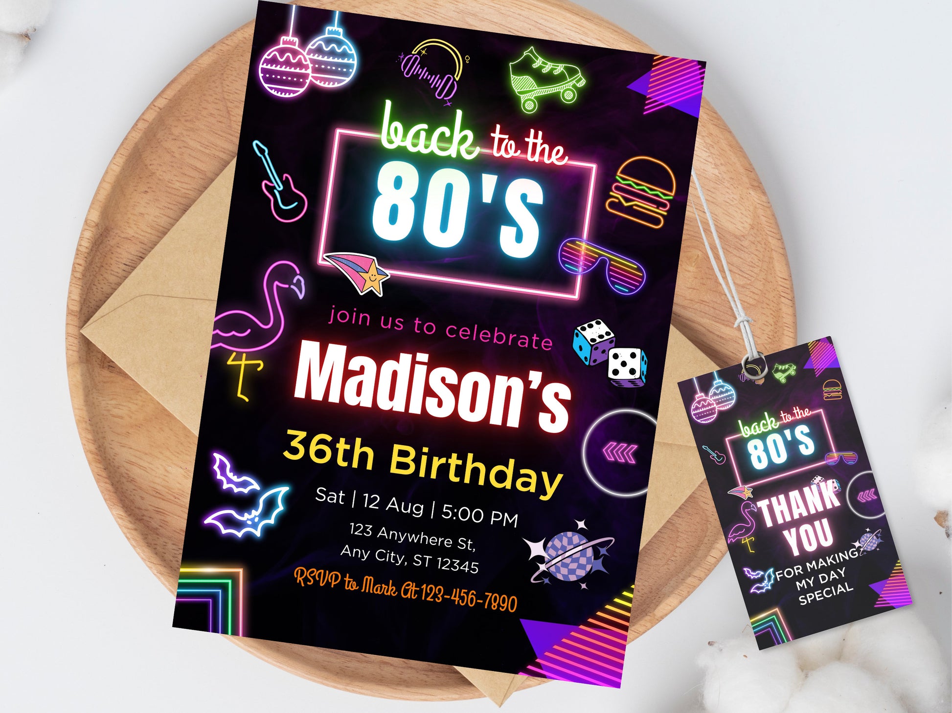 Editable 80s Birthday Party Invitation Template (Digital Invite)