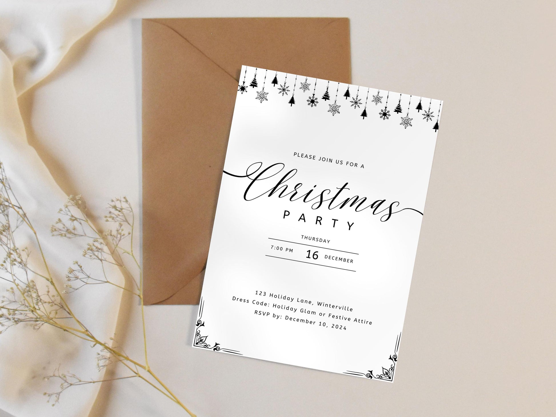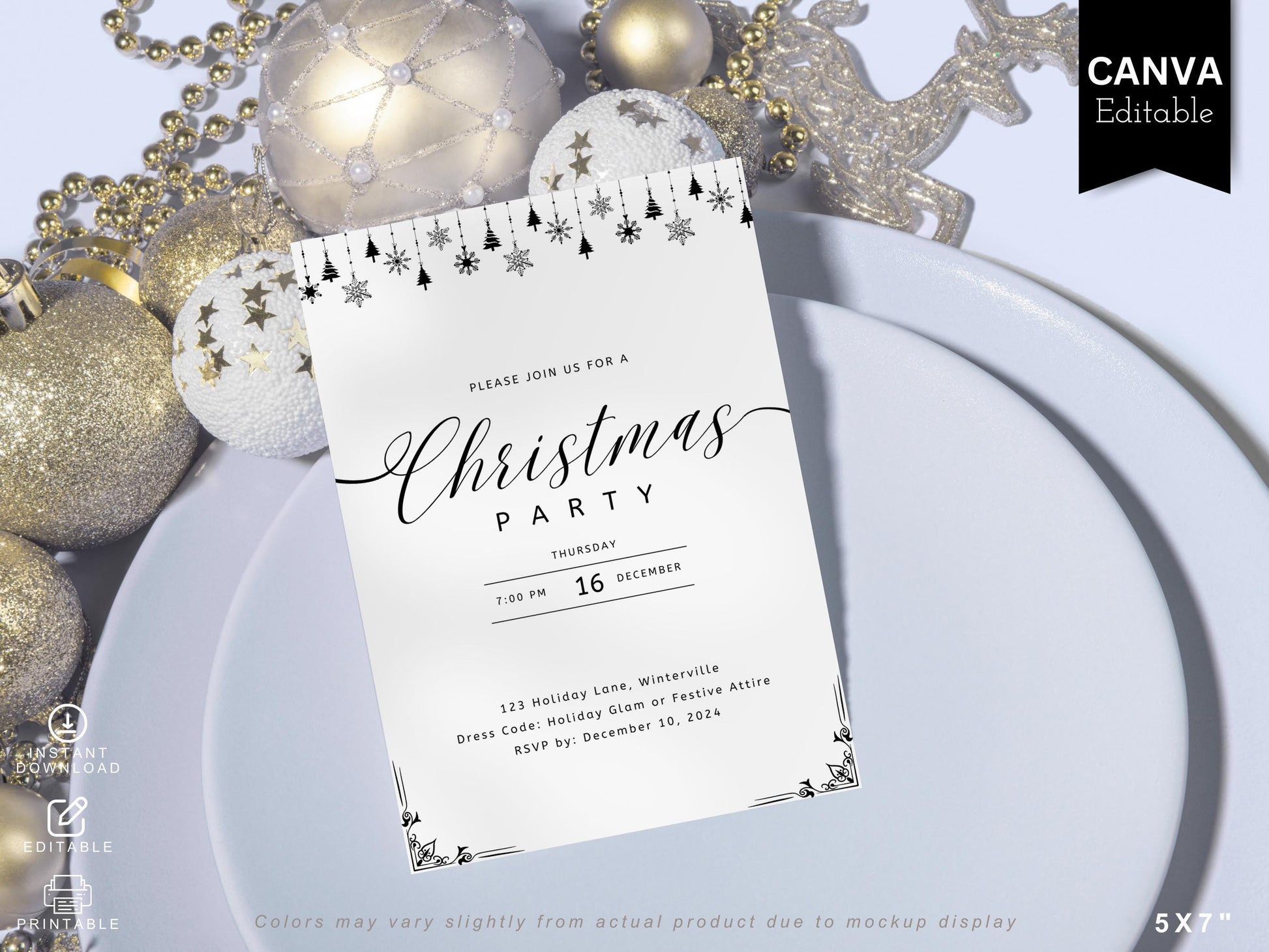 Editable Christmas Party Invitation: Modern Holiday Template (Digital Download)
