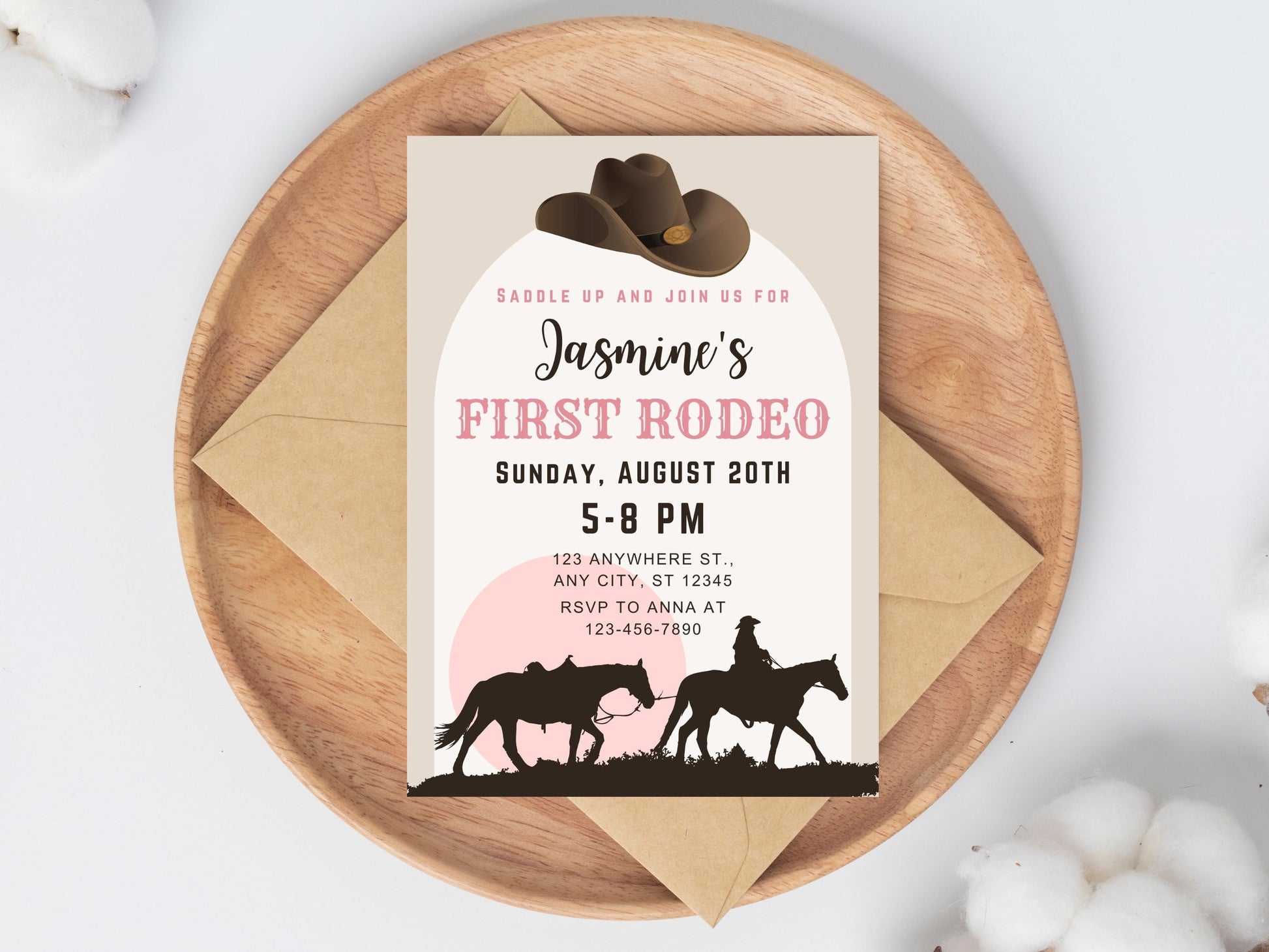 Editable First Rodeo Invitation, Cowgirl 1st Birthday (Canva Template)