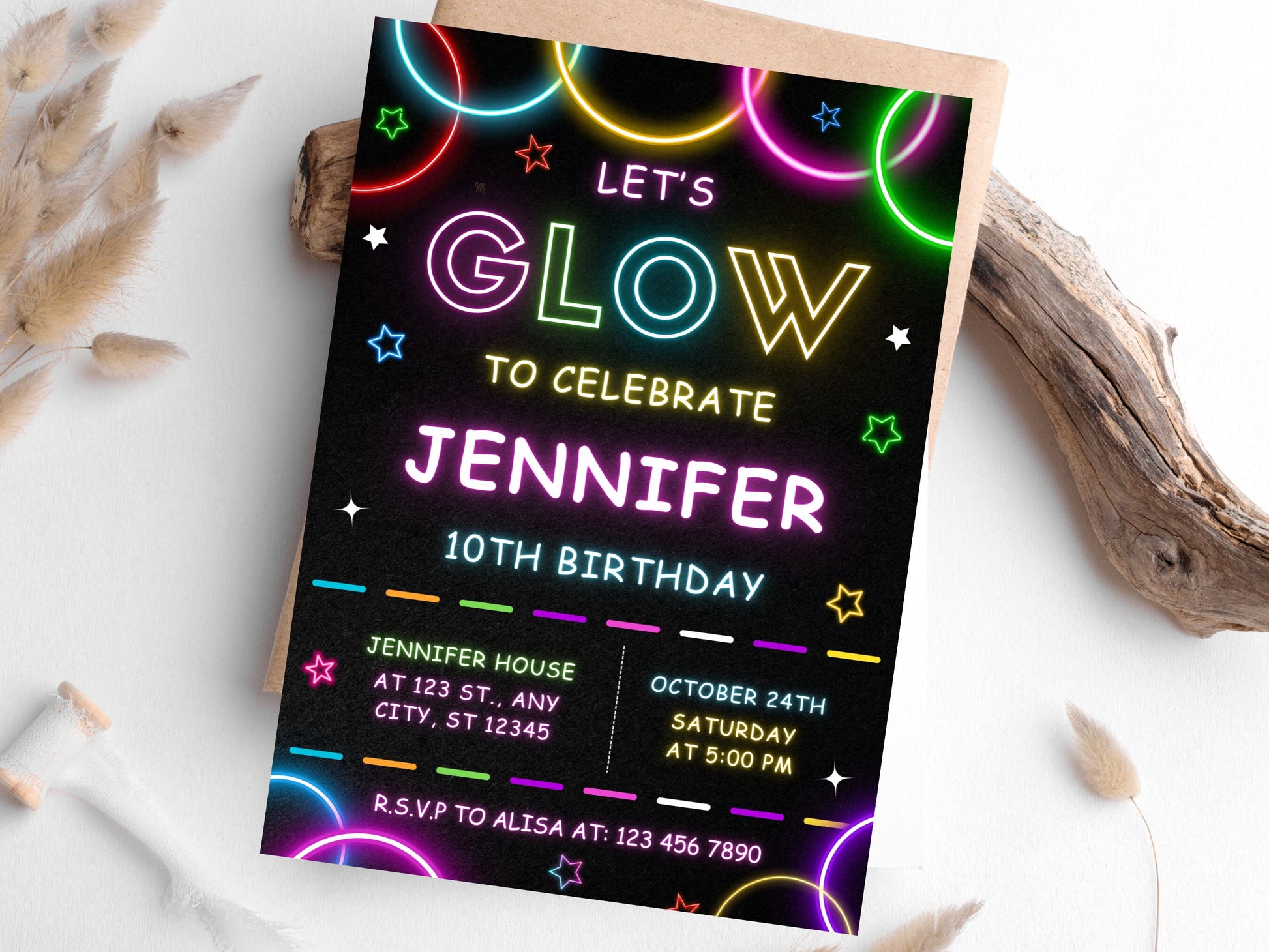 Editable Glow Party Birthday Invitation Template, Neon Invite (Digital Download)
