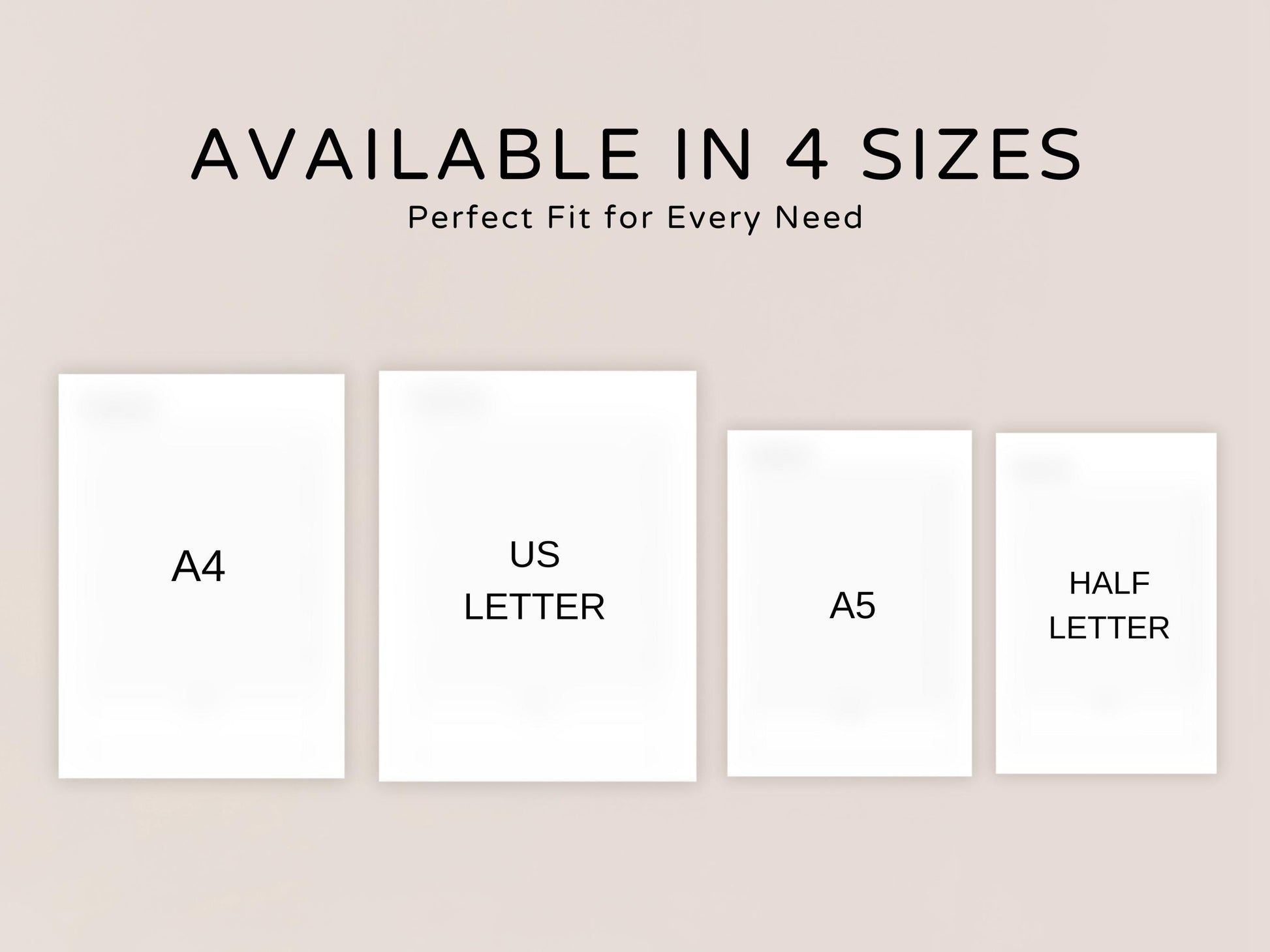 Multiple Sizes: Available in A4, A5, US Letter, and Half Letter for flexible printing.