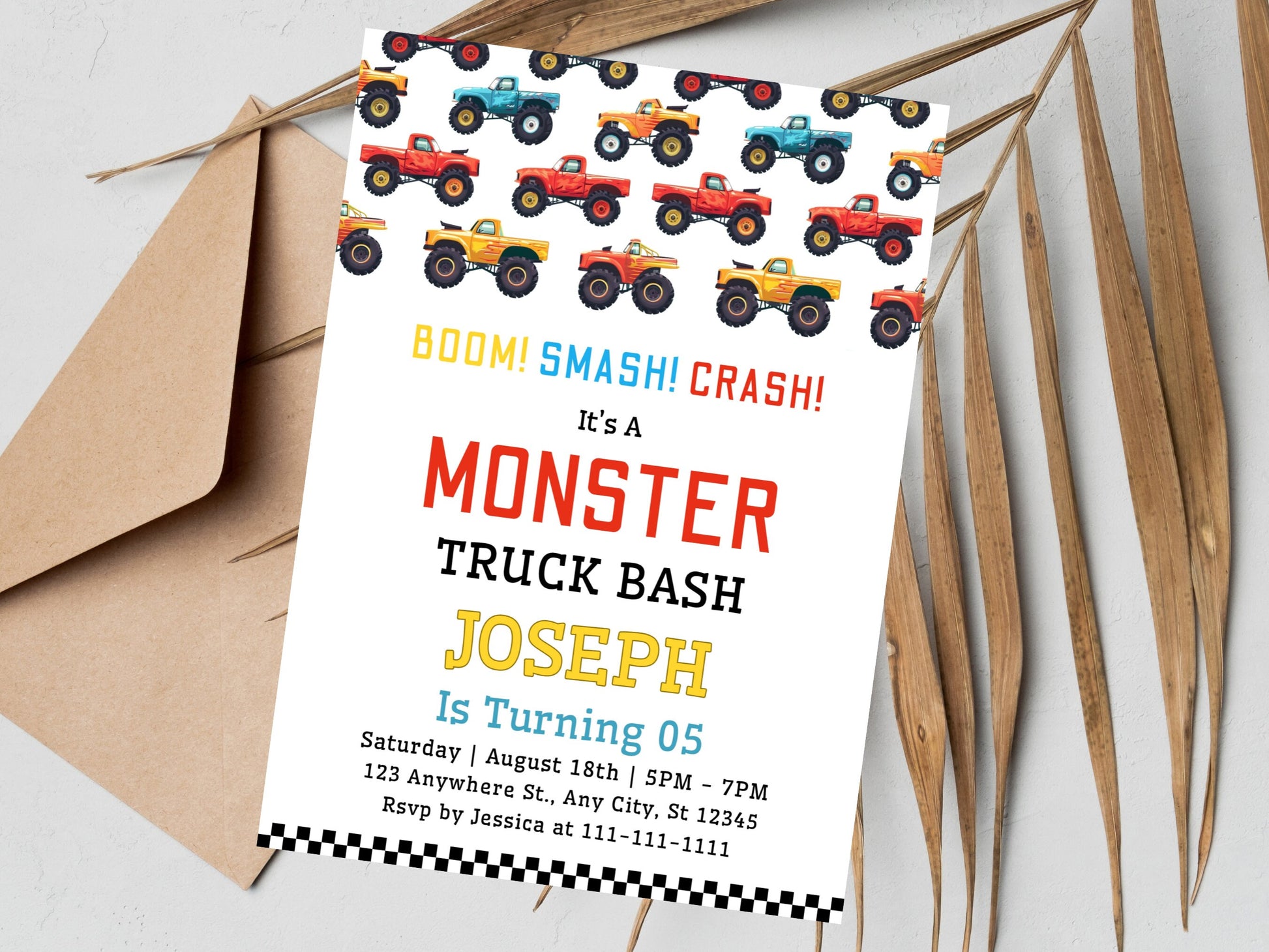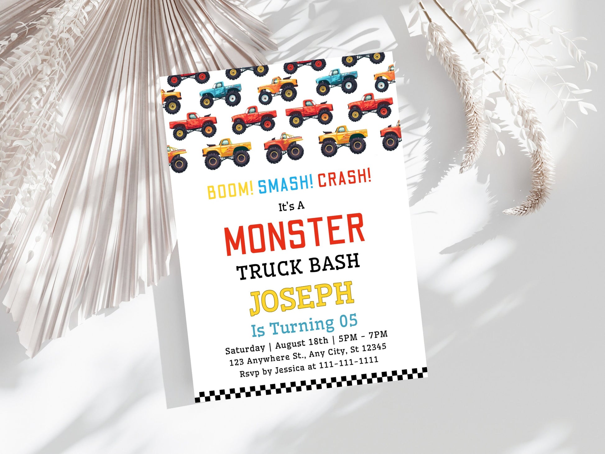 Editable Monster Truck Birthday Invitation Template (Printable)