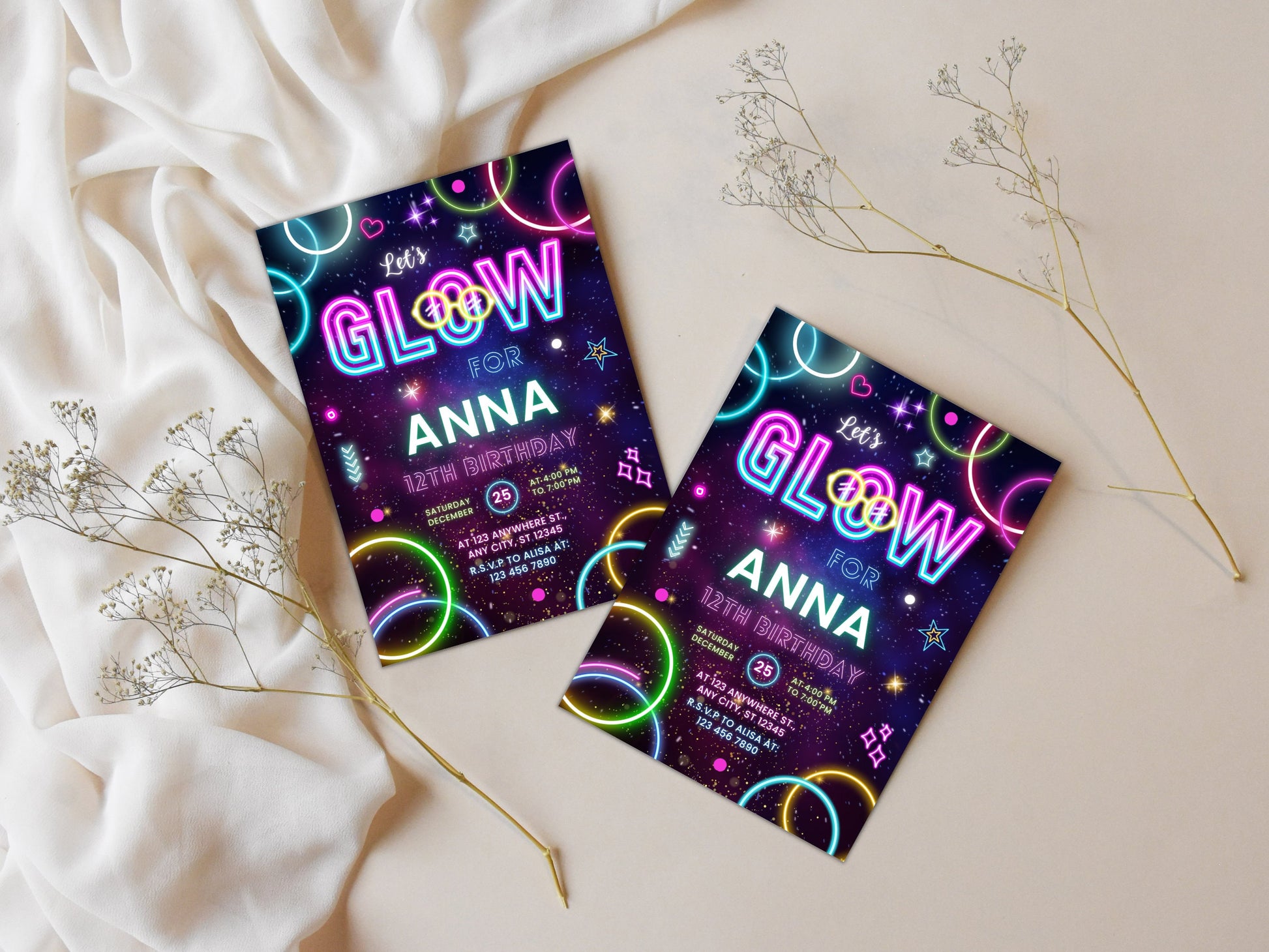 Sign up for a free Canva account and dive into the world of editable Glow Birthday Invitations. Let the countdown to your special day begin!