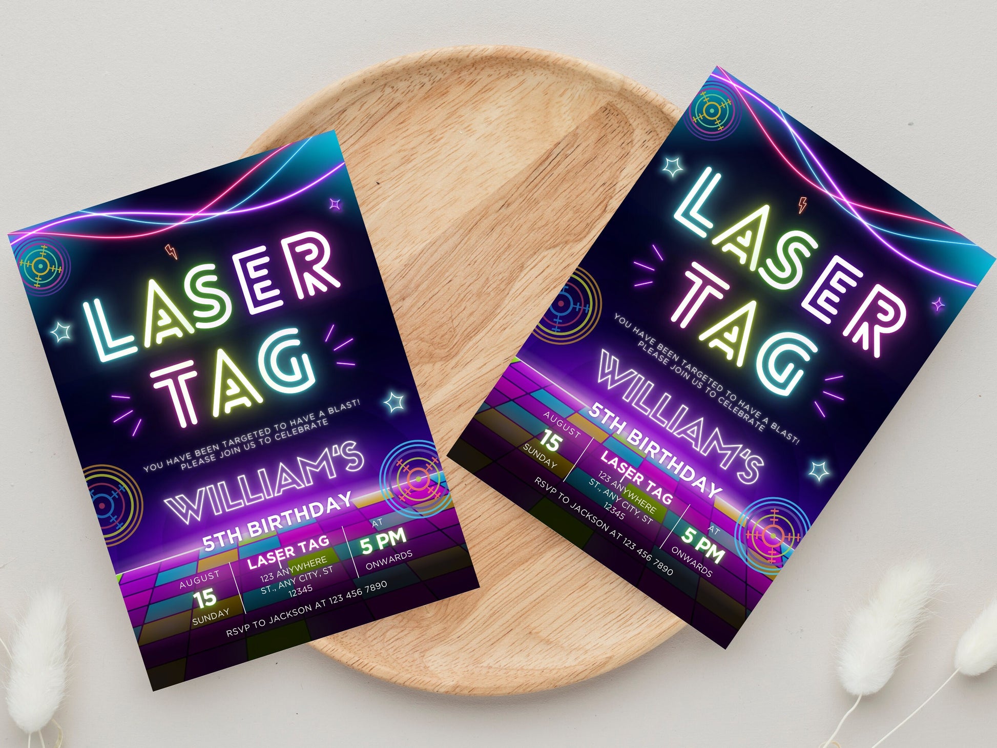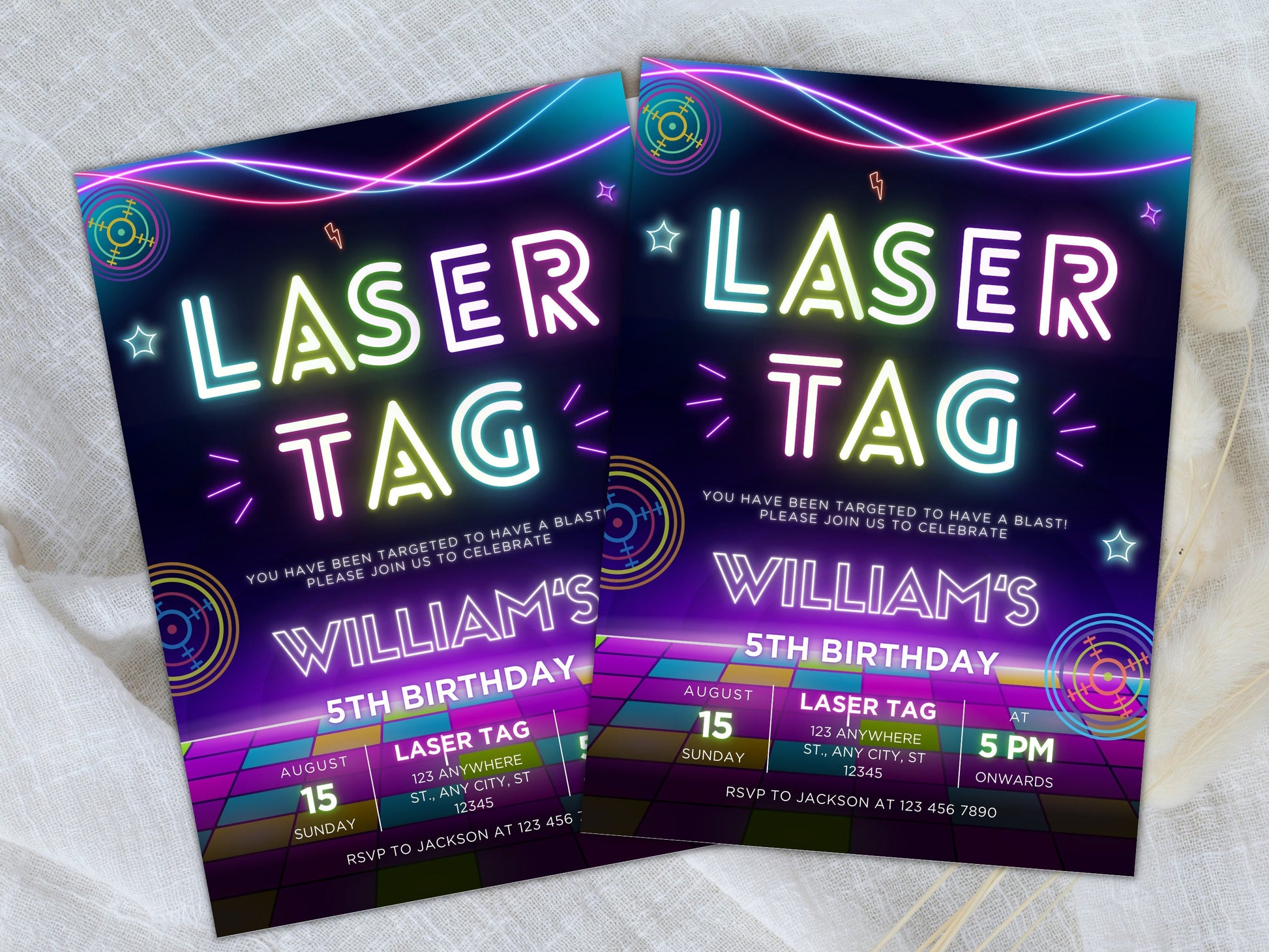 Editable Neon Laser Tag Birthday Invitation (Digital Download)