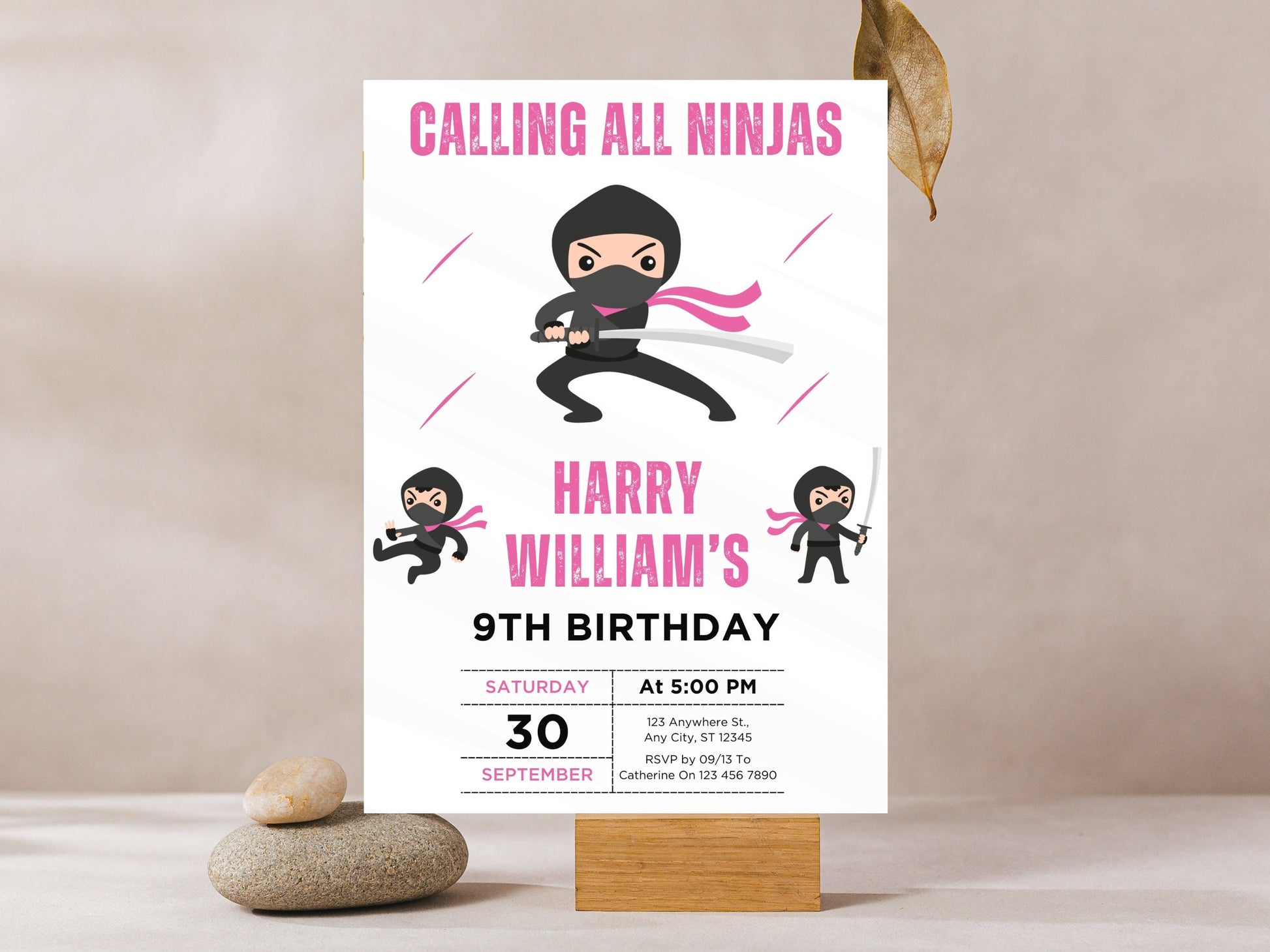 Sign up for a free Canva account and dive into the world of editable Ninja Birthday Invitations. Let the countdown to your special day begin!