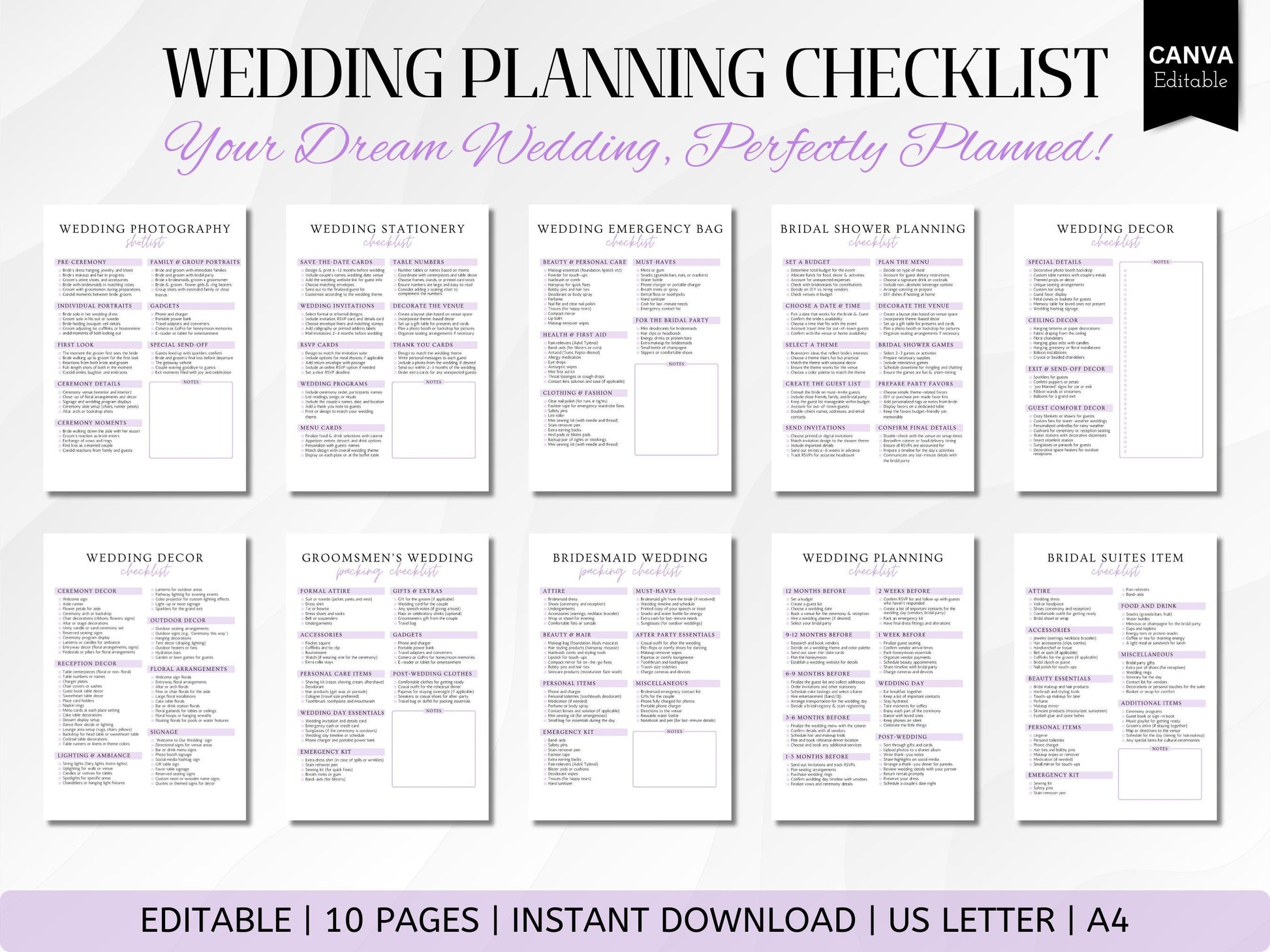Editable Wedding Planner Checklist: Canva Template (PDF Downloadable Link Included)
