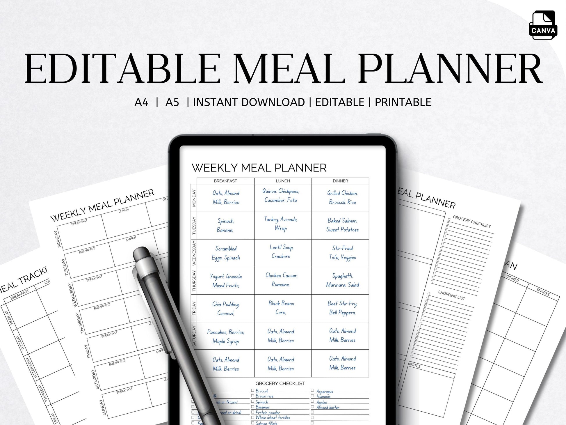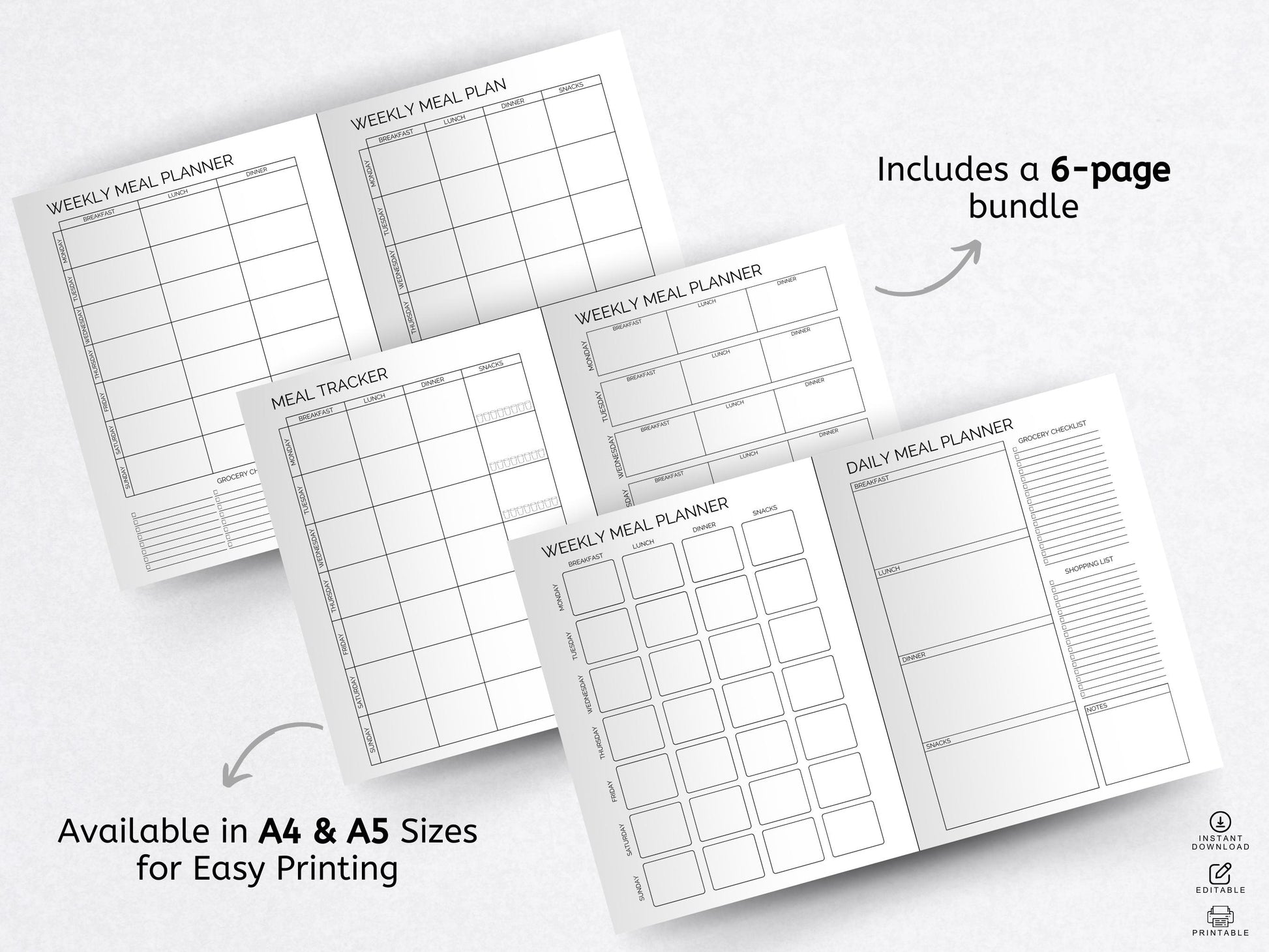 Editable Weekly Meal Planner Template: A4/A5 Printable (Digital Download)