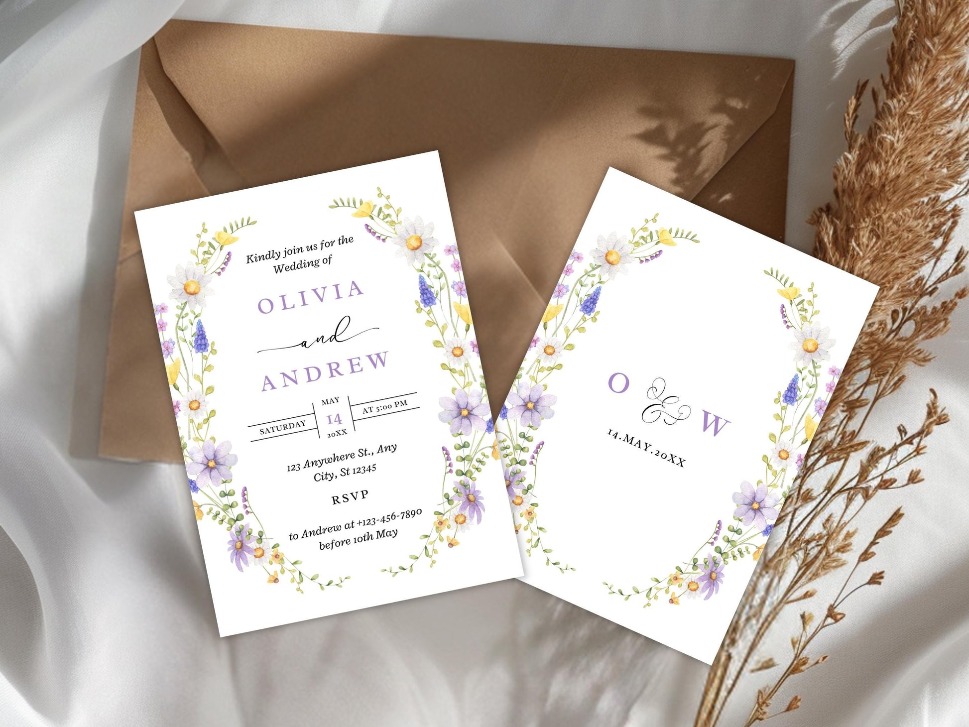 Editable Wildflower Wedding Invitation Template, Wedding Invitation, Printable Wedding Invite, Wildflower Wedding Invite, Greenery Invitation
