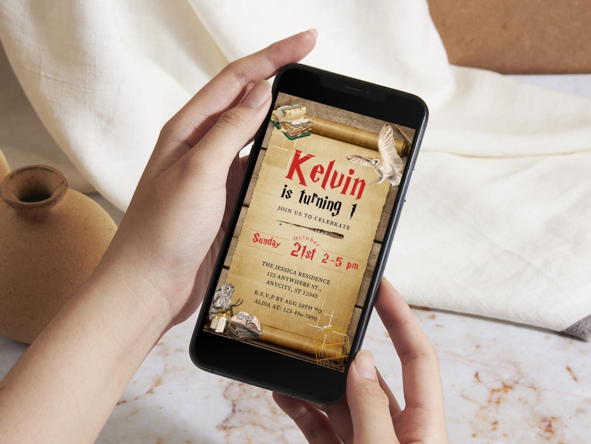 Editable Wizard Birthday Video Invitation, Magical Party Invite (Digital Download)