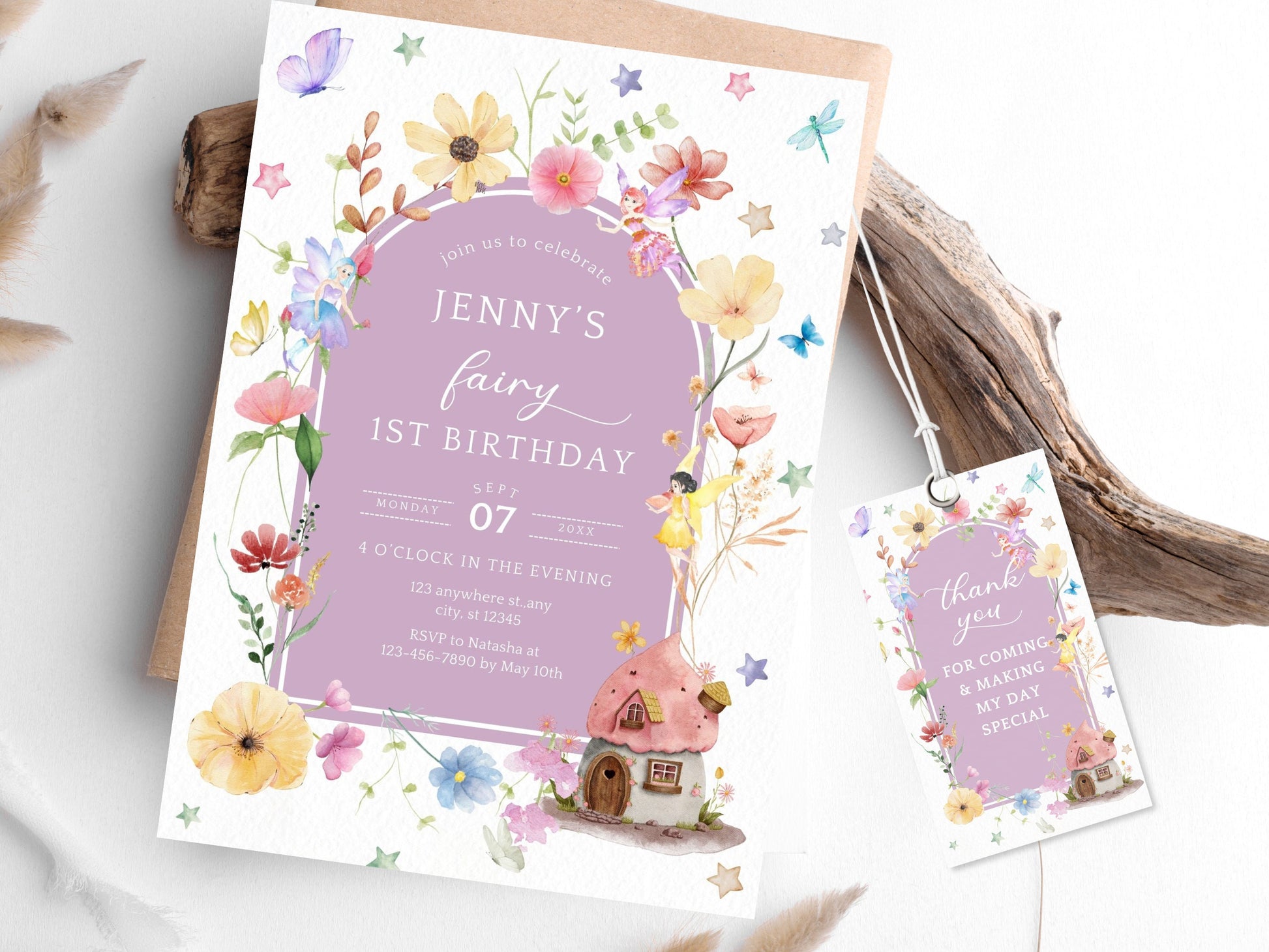 Sign up for a free Canva account and dive into the world of editable Fairy First Birthday Invitations. Let the countdown to your special day begin!