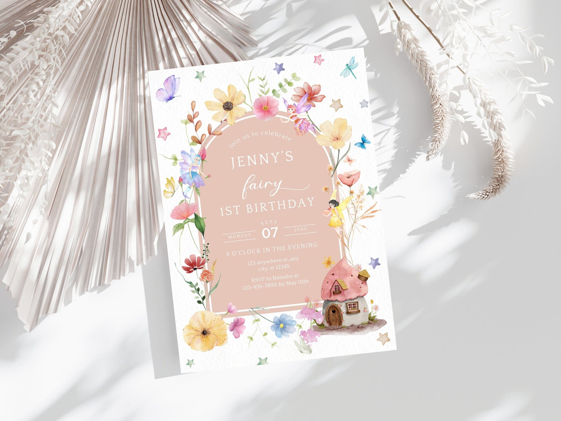 Fairy First Birthday Invitation Template, Blush Wildflower, Garden Party Invite (Digital Download)