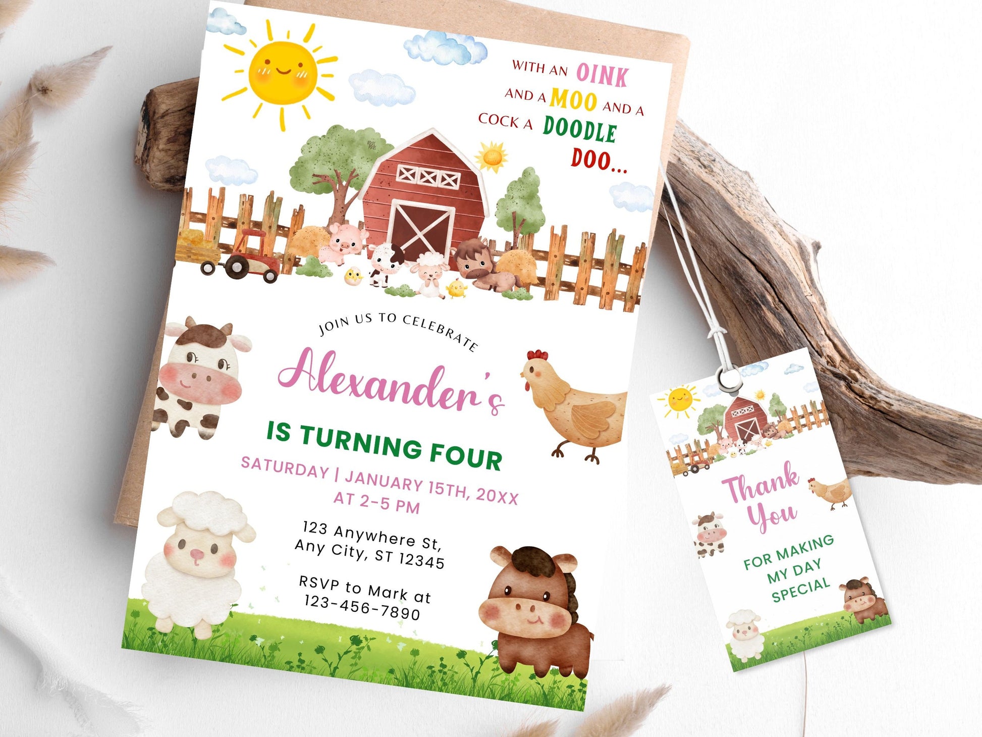 Farm Animals Birthday Invitation, Editable Barnyard Template (Digital Download)