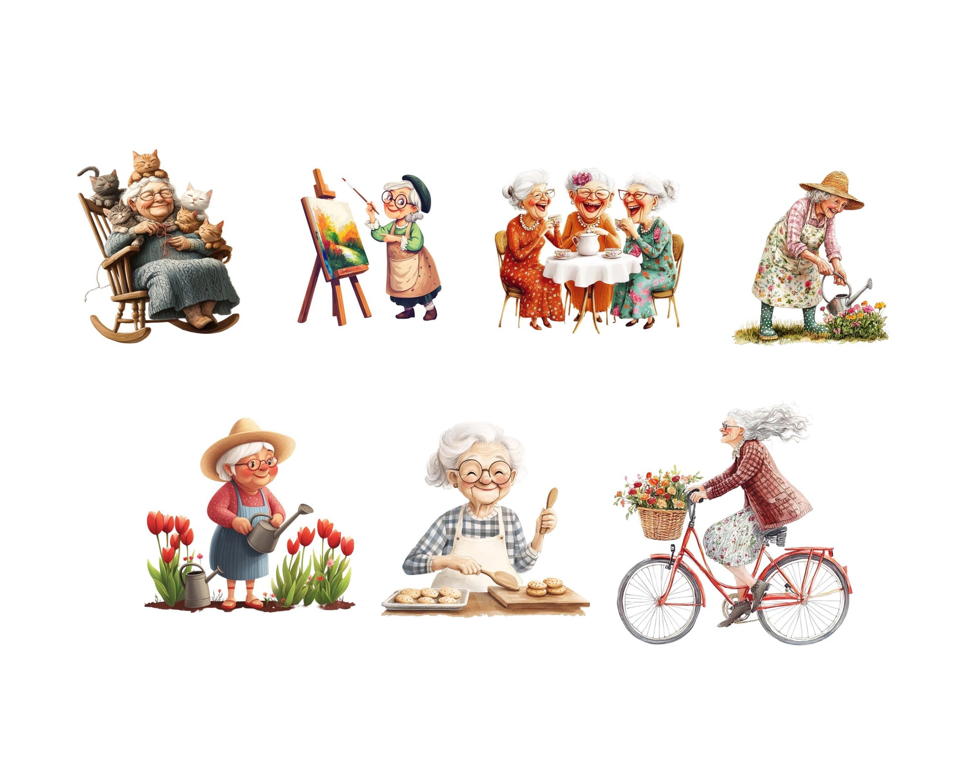 1) 30 high-quality Funny Old Lady clipart image files featuring transparent backgrounds