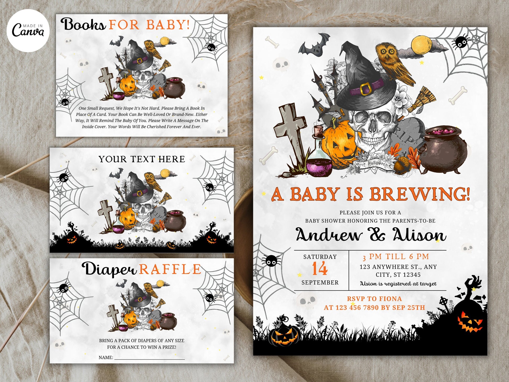 Halloween Baby Shower Invitation Bundle, Gender Neutral, Editable (Digital Download)