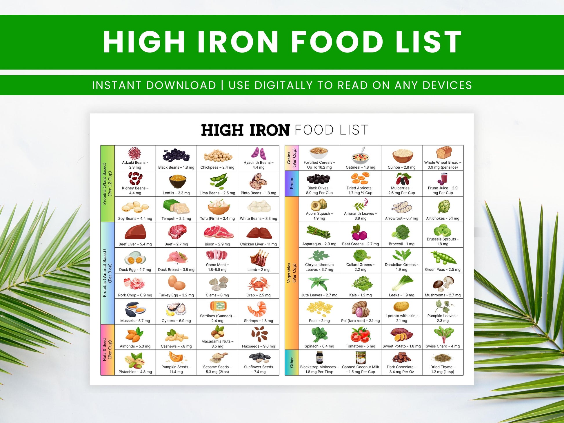 ✔ Organized list of iron-rich foods