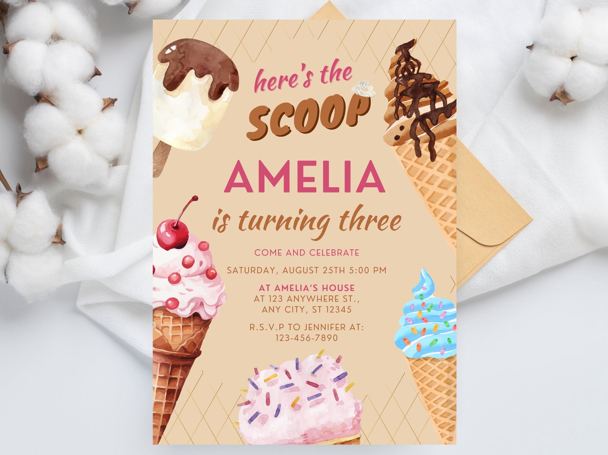 Sign up for a free Canva account and dive into the world of editable Ice Cream Birthday Invitations. Let the countdown to your special day begin!