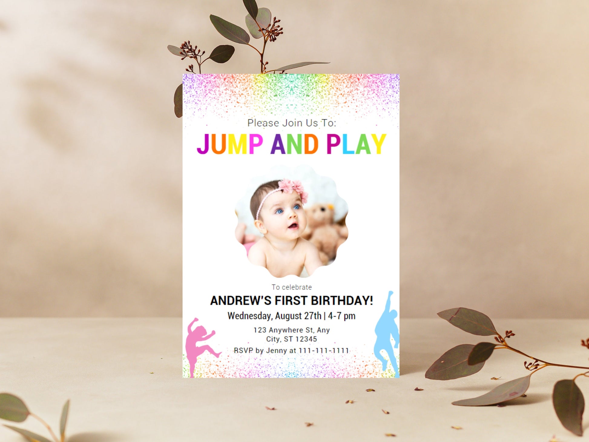 Introducing our customizable Jump Birthday Invitation Template! This versatile template can be easily tailored to suit your specific requirements. Modify the text, font size, font type, and freely manipulate or remove any images.