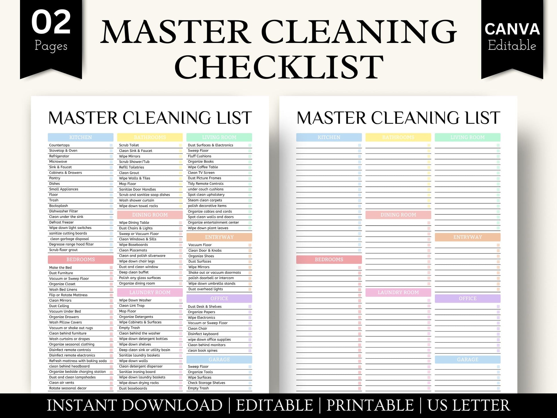 Organize your cleaning routine effortlessly with the Master Cleaning Checklist! Download today and take the first step toward a cleaner, more organized home.