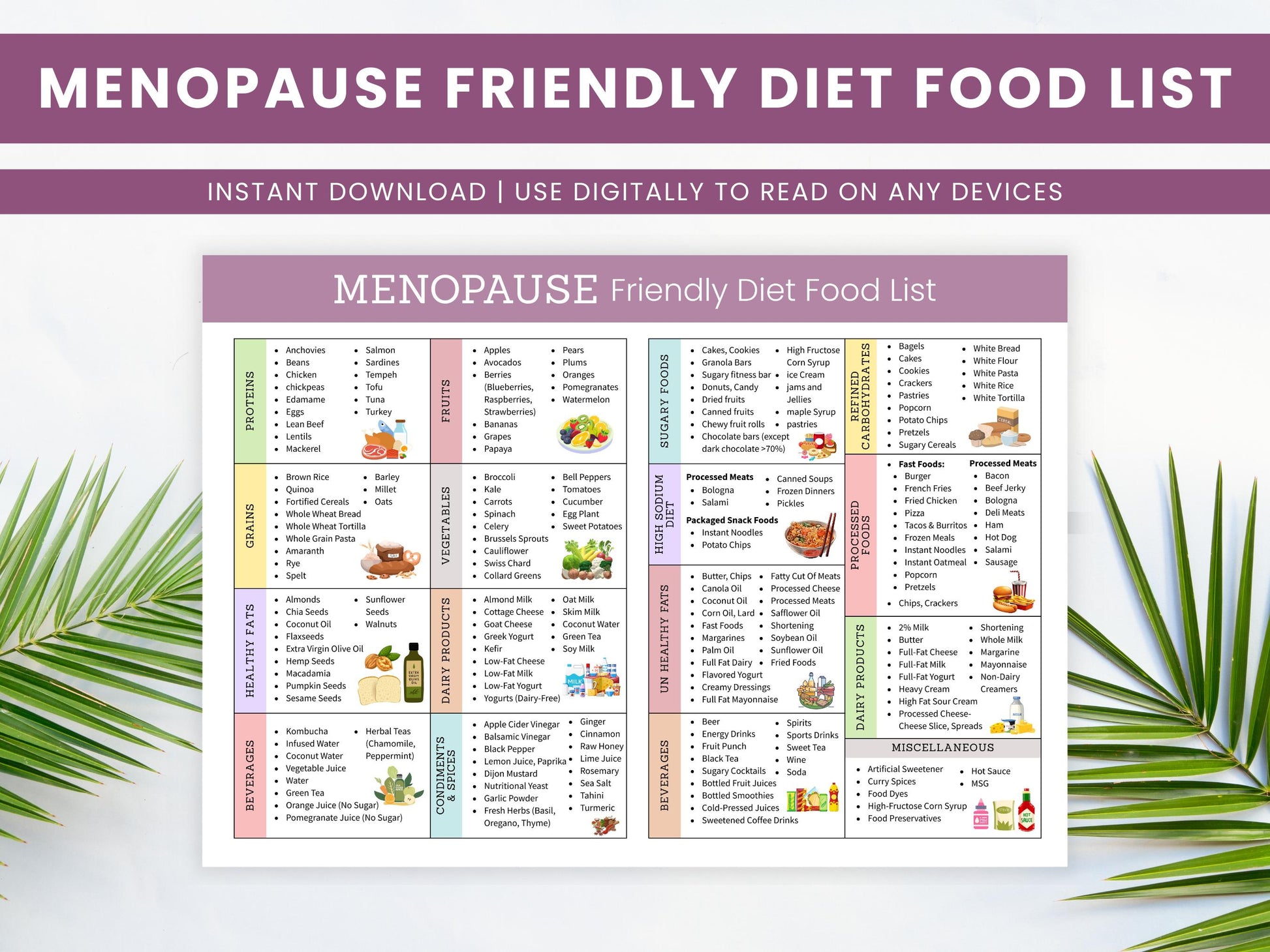 ✔ Organized list of menopause-friendly foods