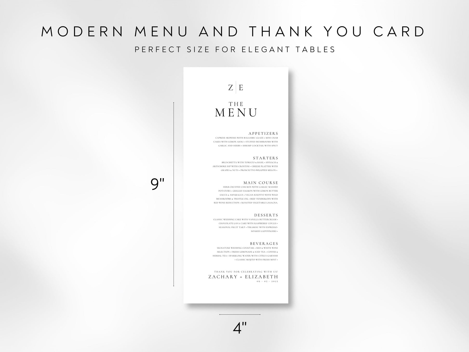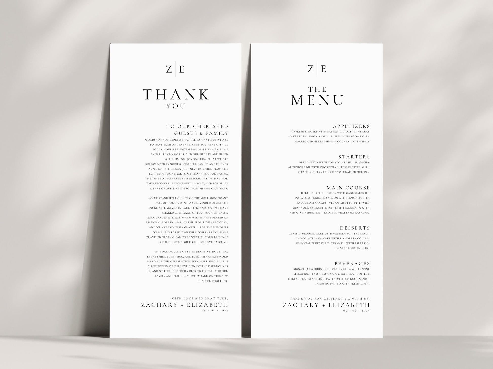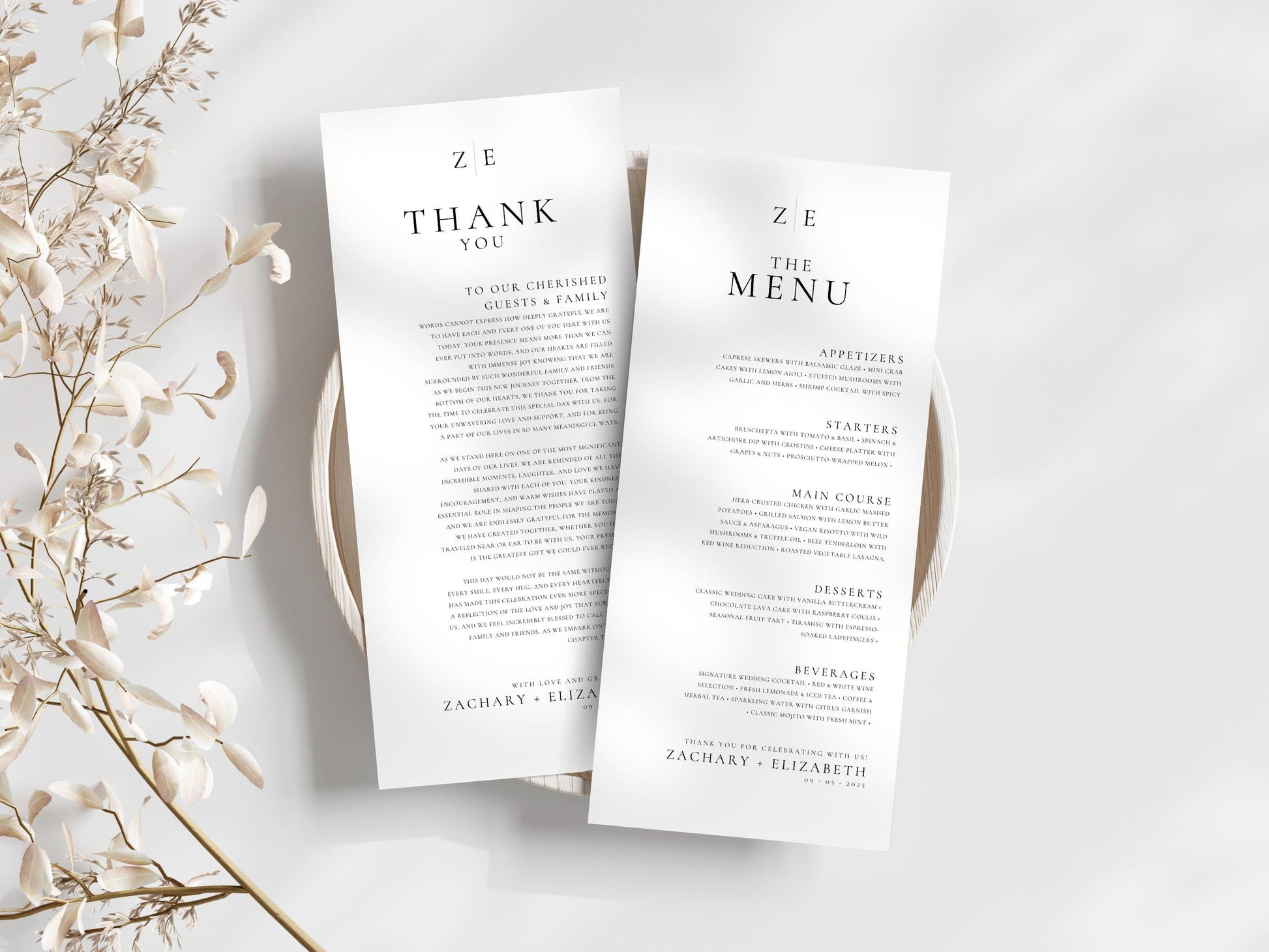 Minimalist Wedding Menu & Thank You Card Template | Modern & Elegant Design