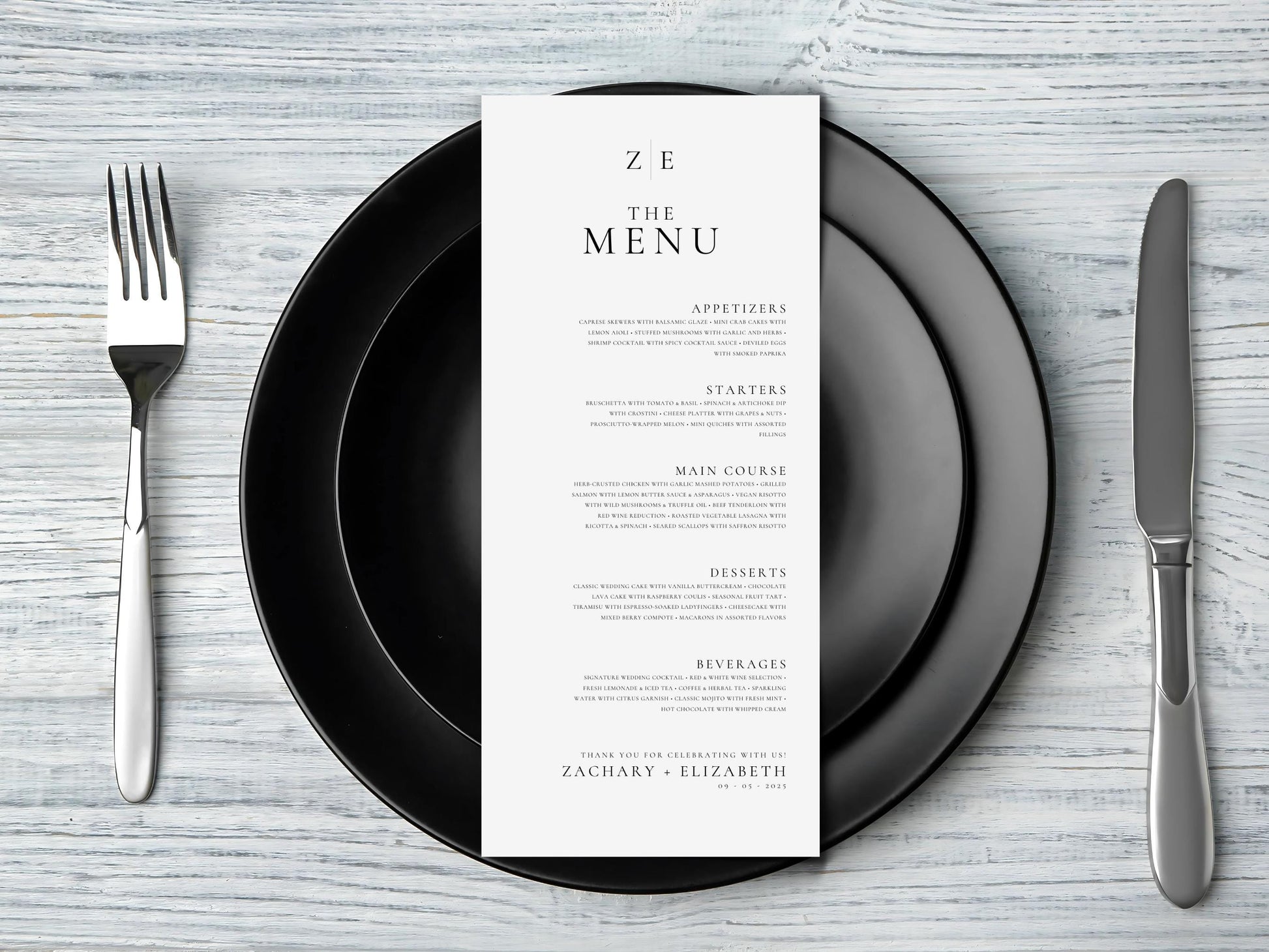 Minimalist Wedding Menu Template: Modern Elegant Design (Printable)