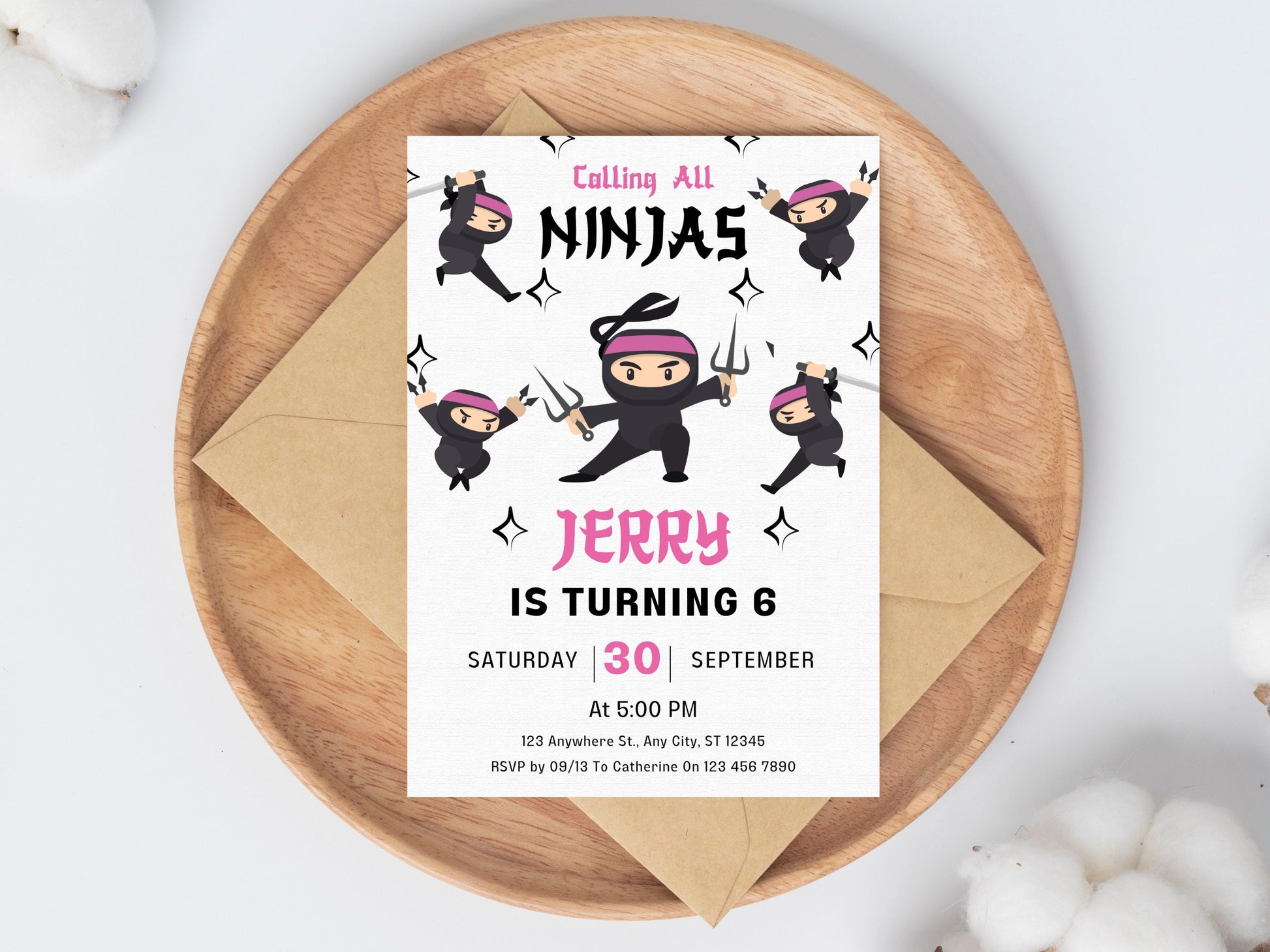 Sign up for a free Canva account and dive into the world of editable Ninja Birthday Invitations. Let the countdown to your special day begin!