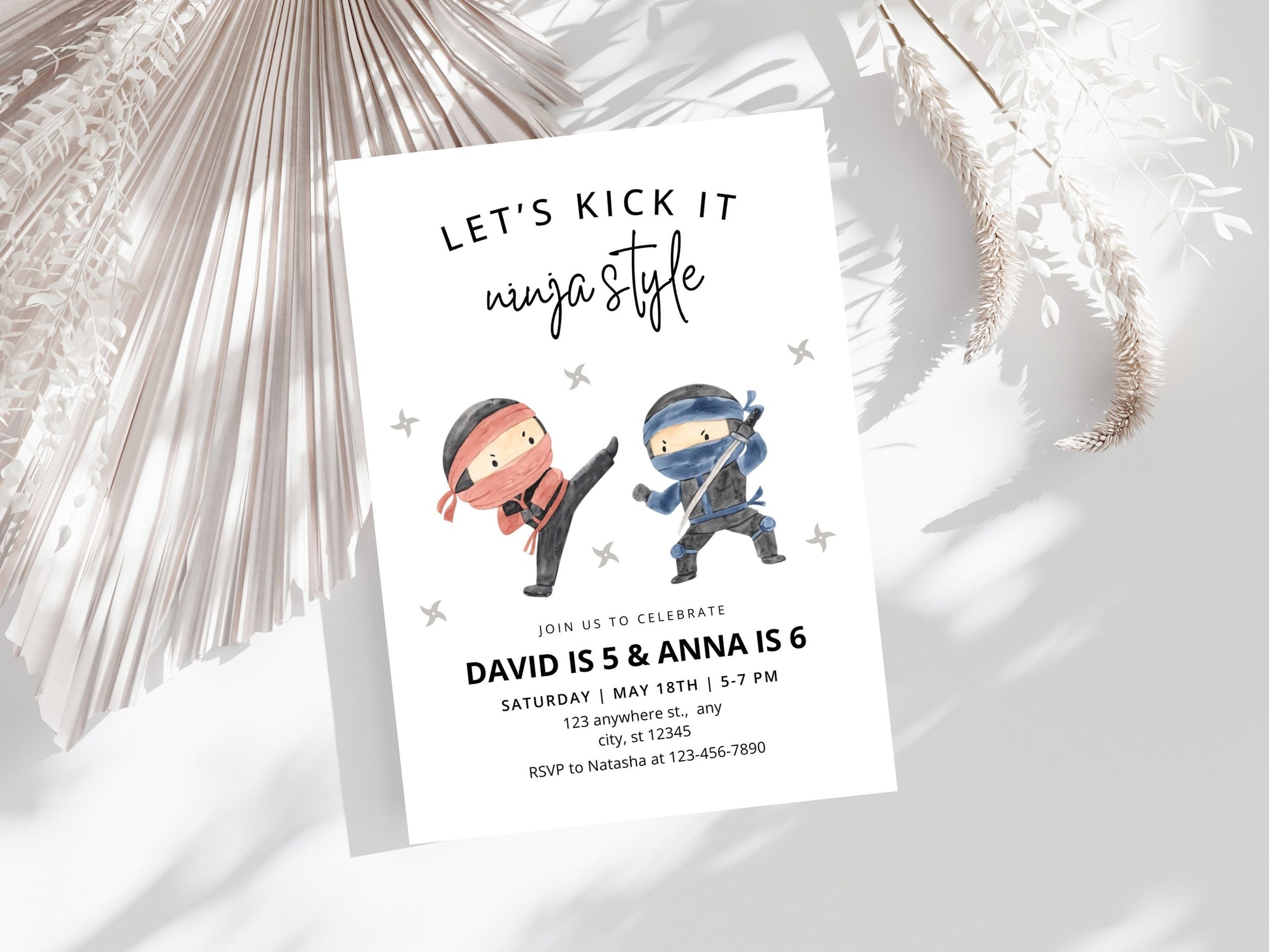Ninja Birthday Invitation, Editable Siblings Karate Party Invite (Digital Download)