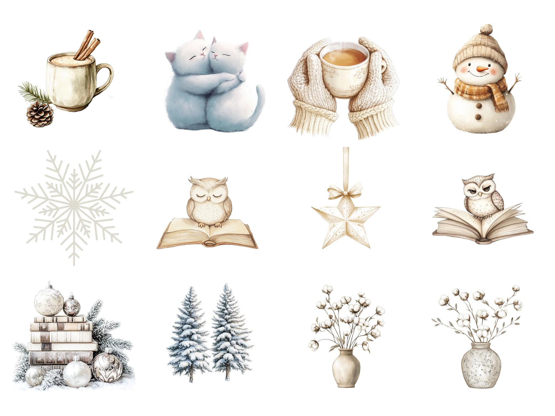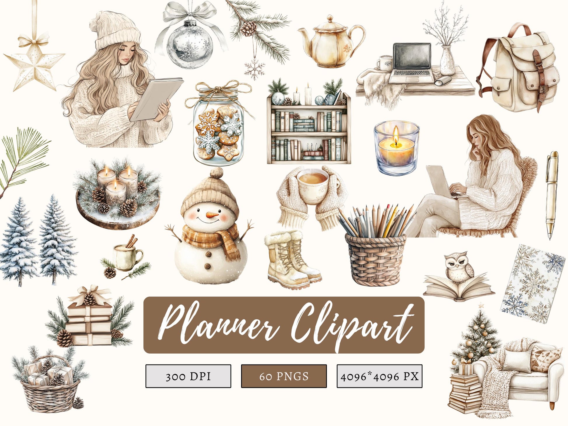 Planner Clipart png Bundle, Watercolor Planner Girl Clipart, Winter Season, Cuteness Clipart, Planner Lover Clipart, Planner Elements png