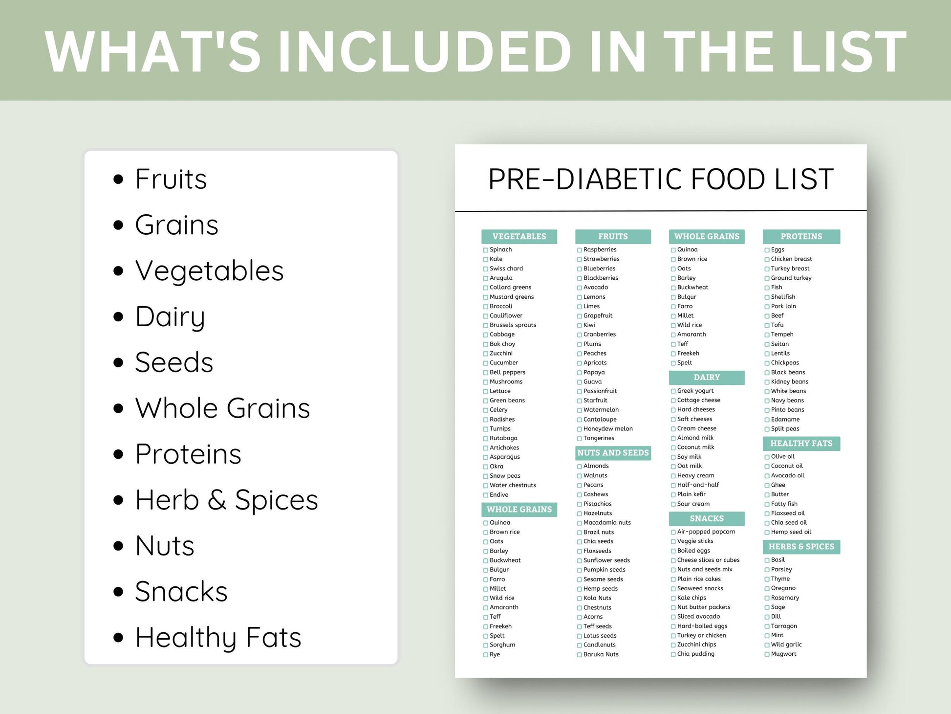 Pre-Diabetic Food List: Health & Groceries Planner (Digital Download)