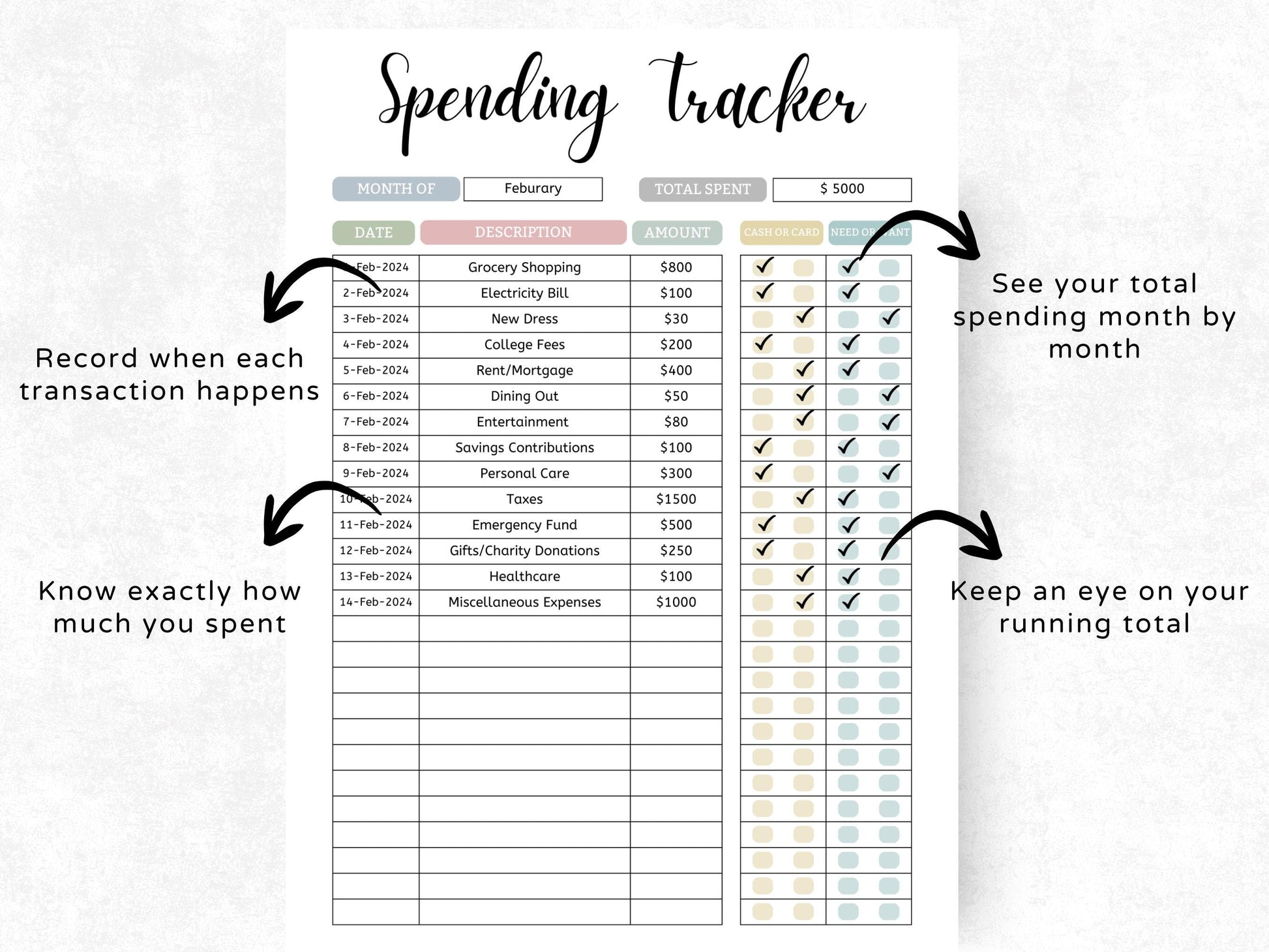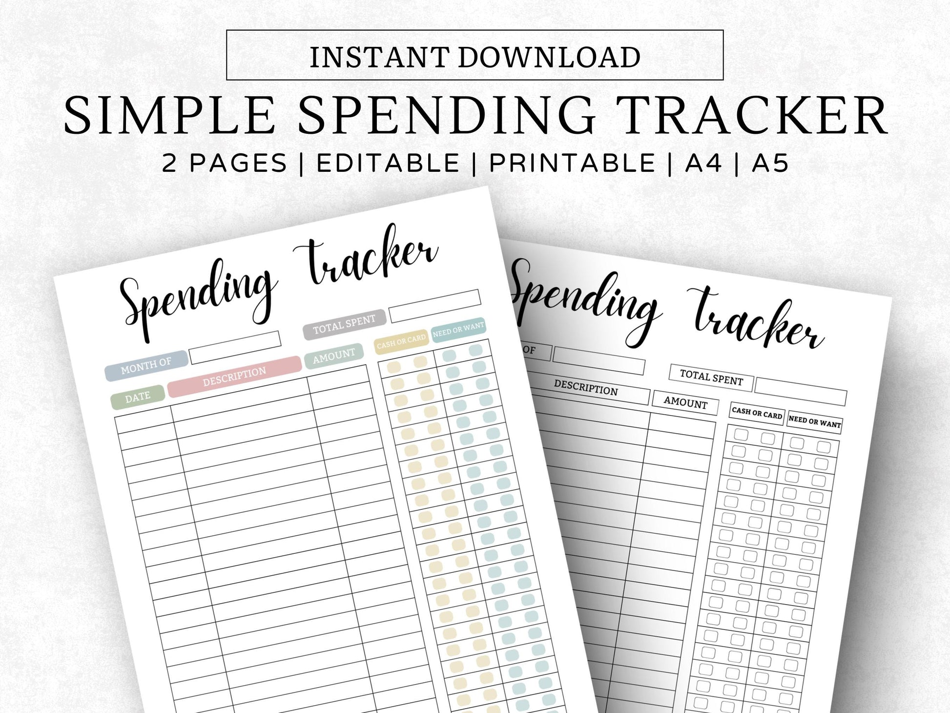 Simple Spending Tracker Editable & Printable, A4/A5, Money Budget Chart, Spending Organizer, Spending Planner, Instant Download