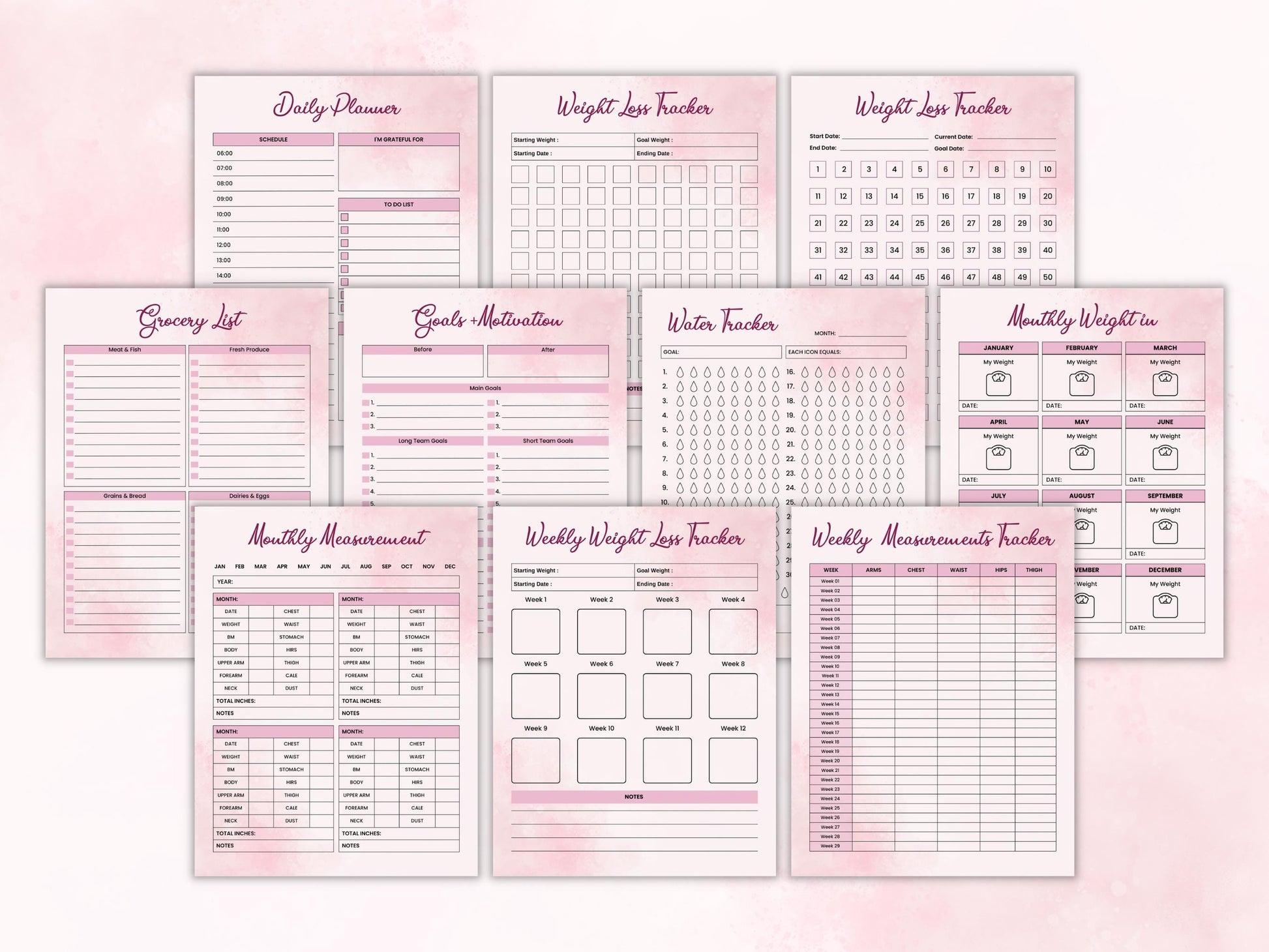 ✔️ Weight Loss Trackers (100-Day, Monthly & Weekly)