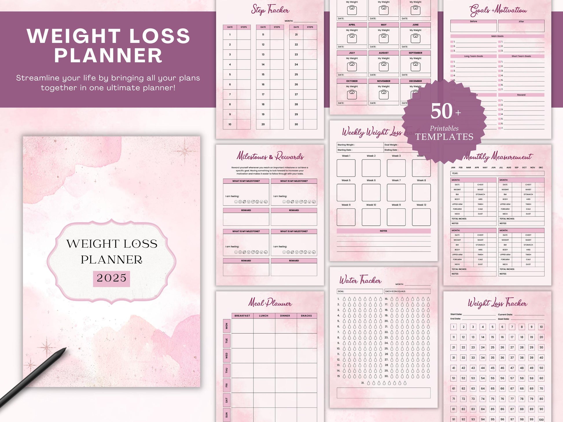Instant download – begin your fitness transformation today! This weight loss planner is your all-in-one support system to stay motivated, build healthy routines, and crush your health goals.