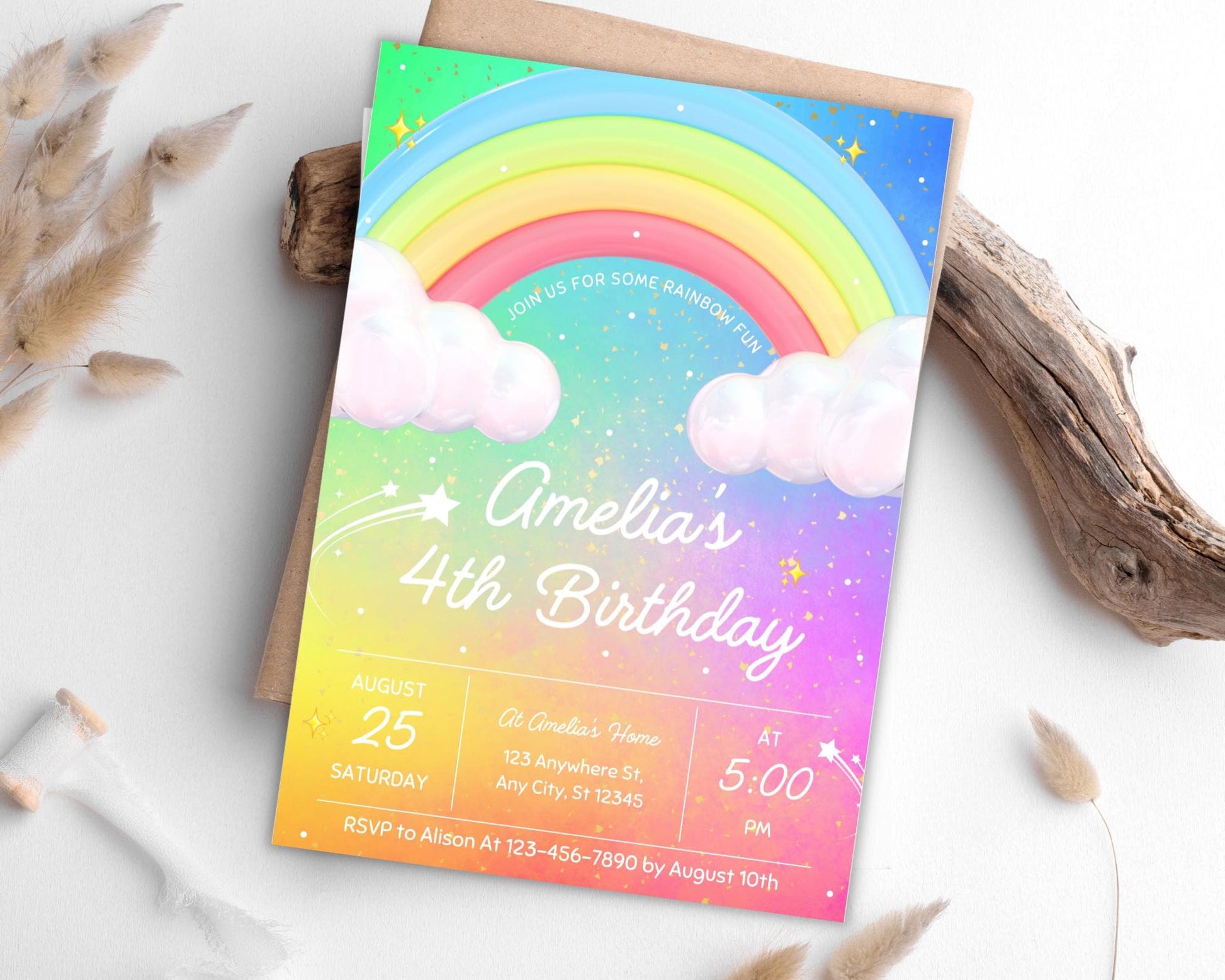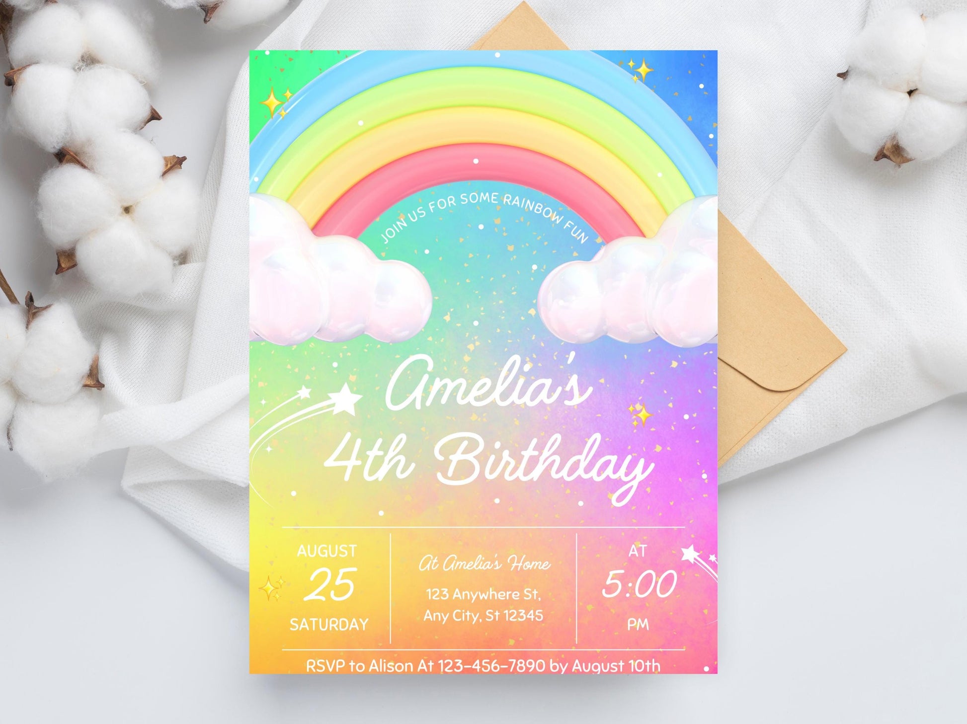 Rainbow Birthday Invitation Canva, Editable Template, Magical Rainbow Party Invite, Pastel Rainbow Birthday, Colorful Birthday Celebration