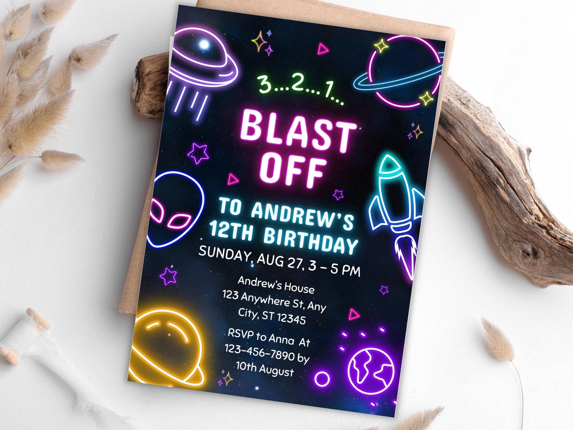 Sign up for a free Canva account and dive into the world of editable Space Boy Birthday. Let the countdown to your special day begin!