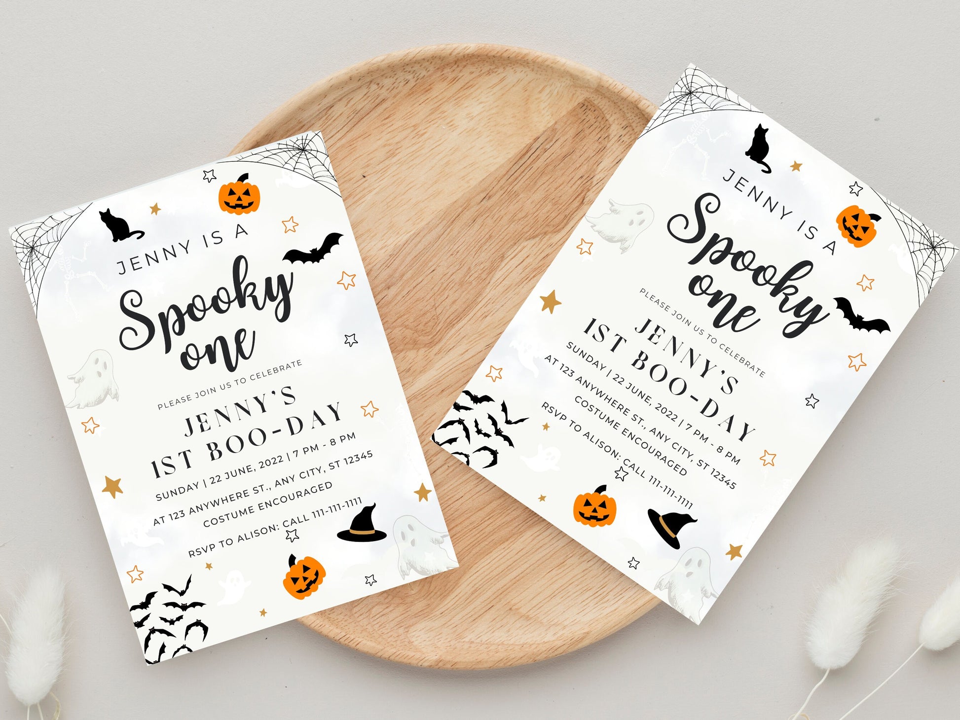 Introducing our customizable Spooky One Halloween Birthday Party Invitation This versatile template can be easily tailored to suit your specific requirements. Modify the text, font size, font type.