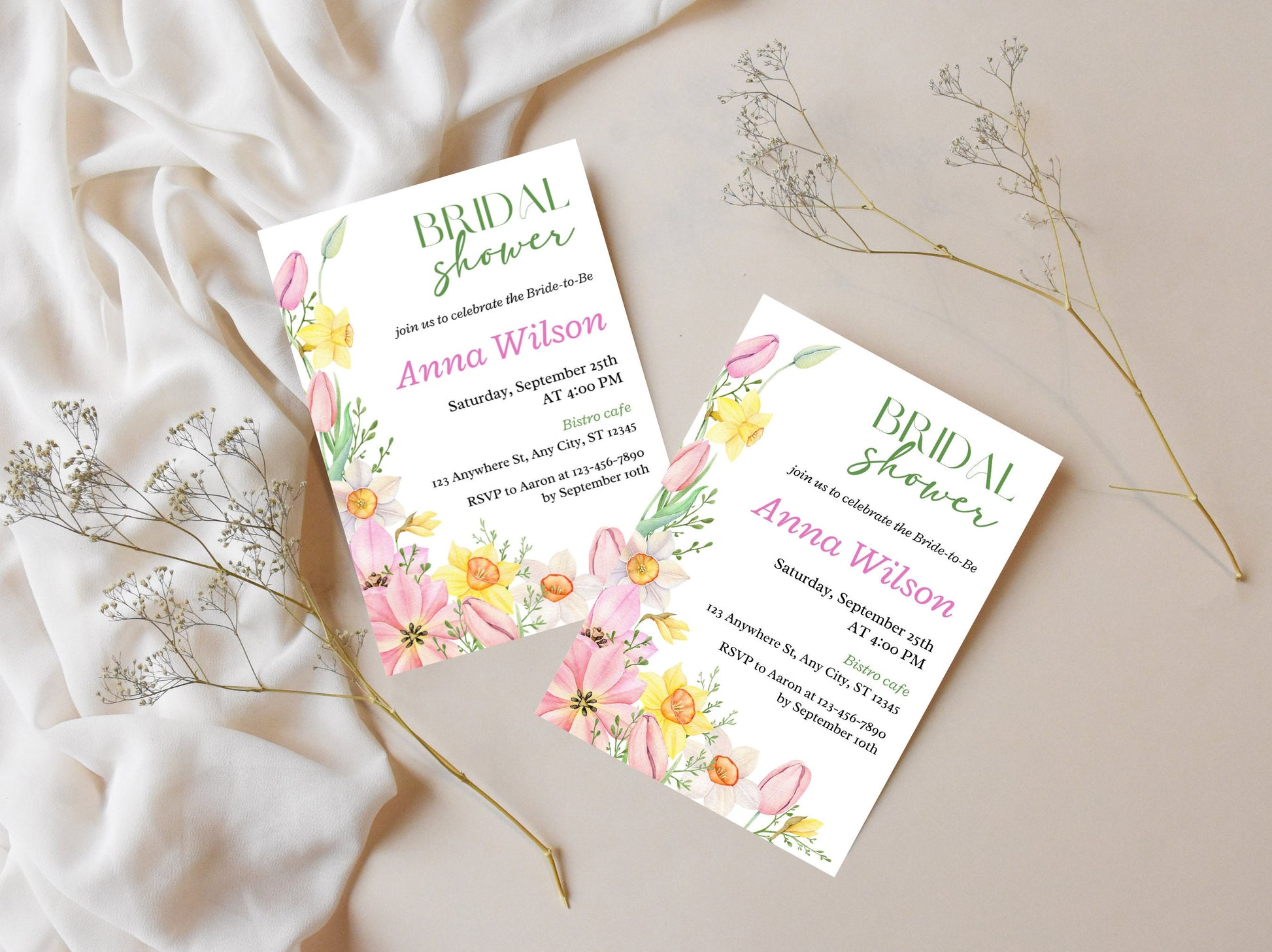 Spring Floral Bridal Shower Invitation Template (Digital Download)