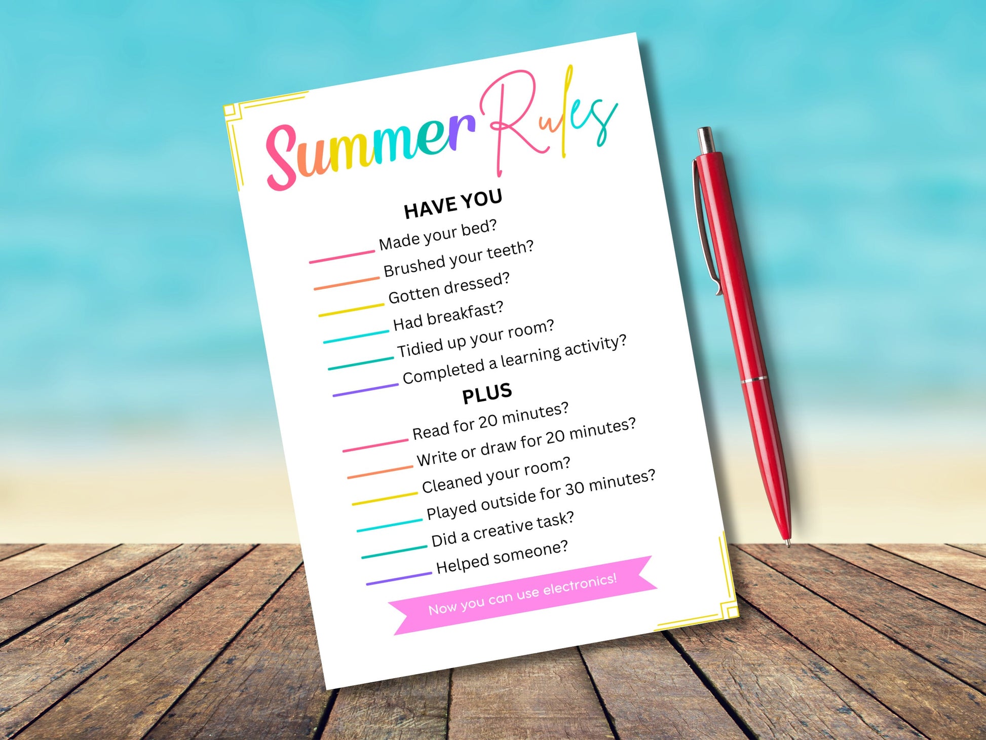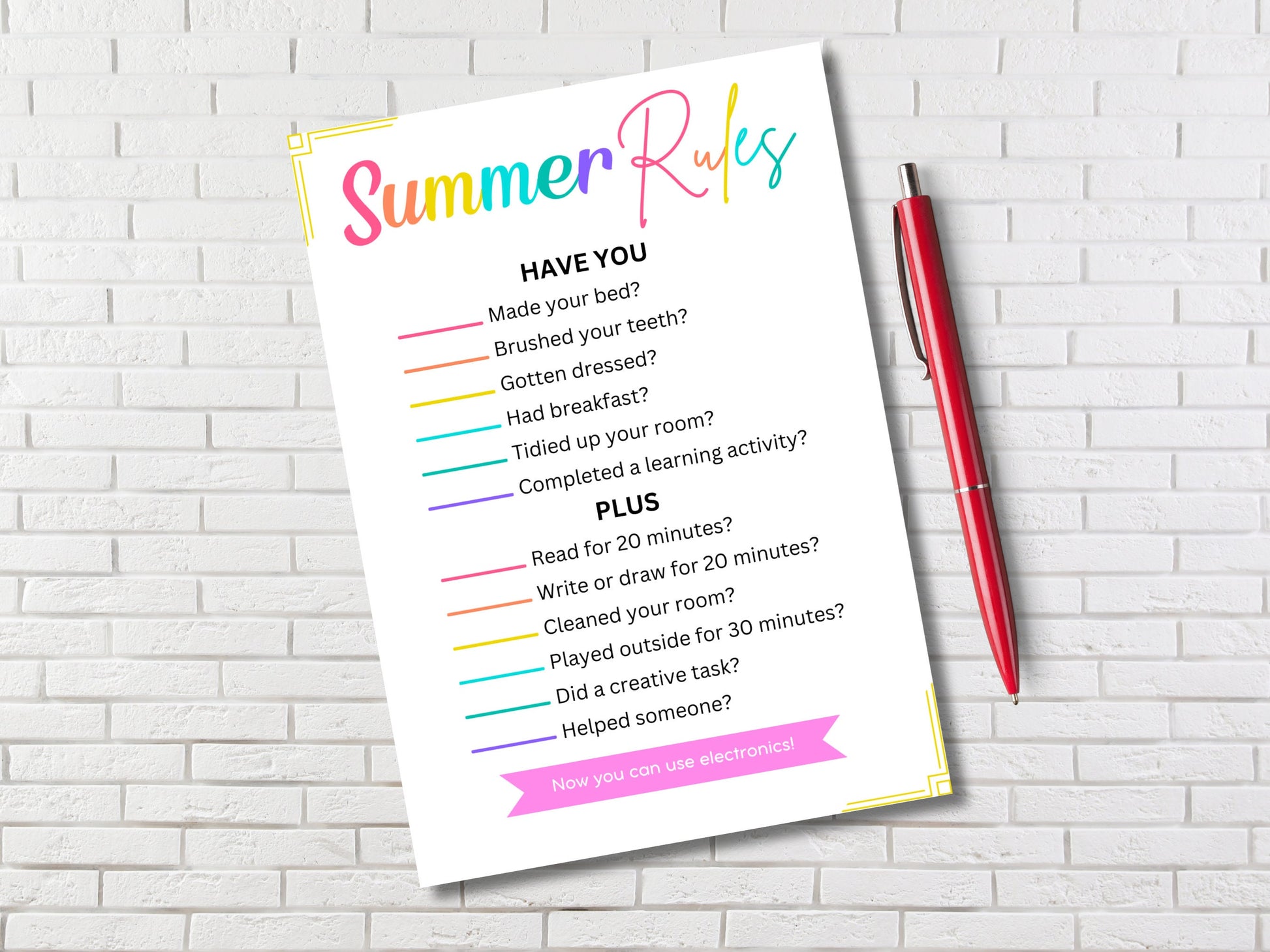 Summer Rules Checklist, Screen Time Rules, Screen Time Tracker, Summer Rules For Kids, Kids Checklist, Instant Download