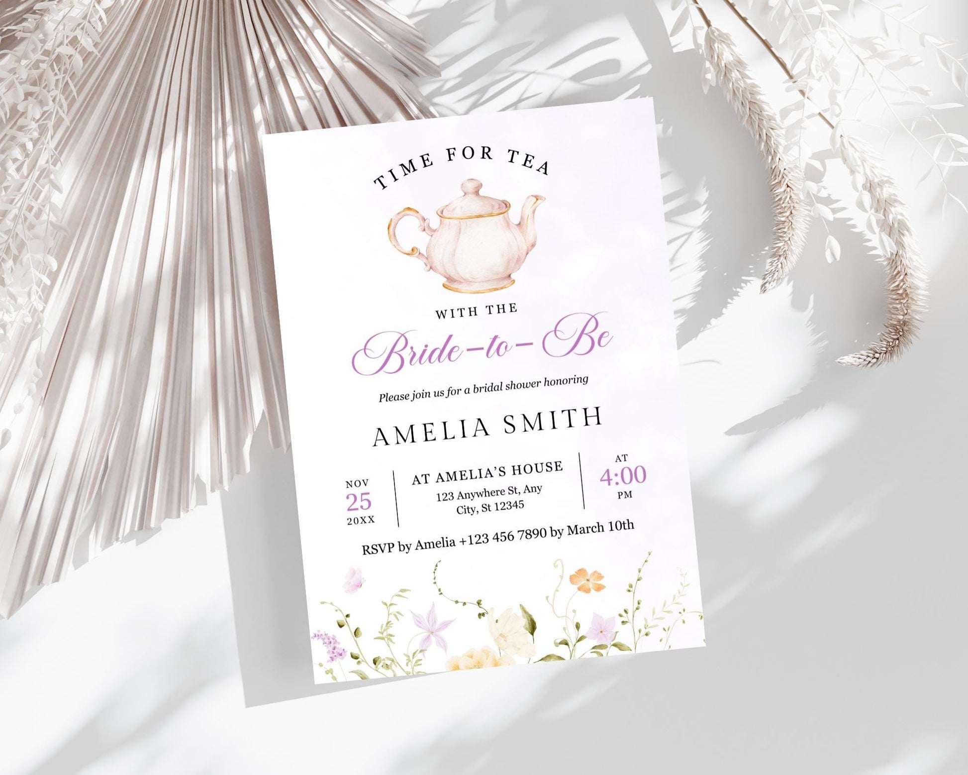 bridal shower, tea party invite, bride-to-be, editable bridal invite, printable shower invite, wedding shower tea theme