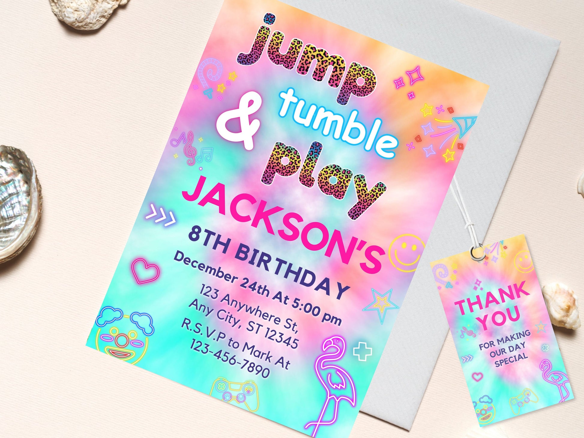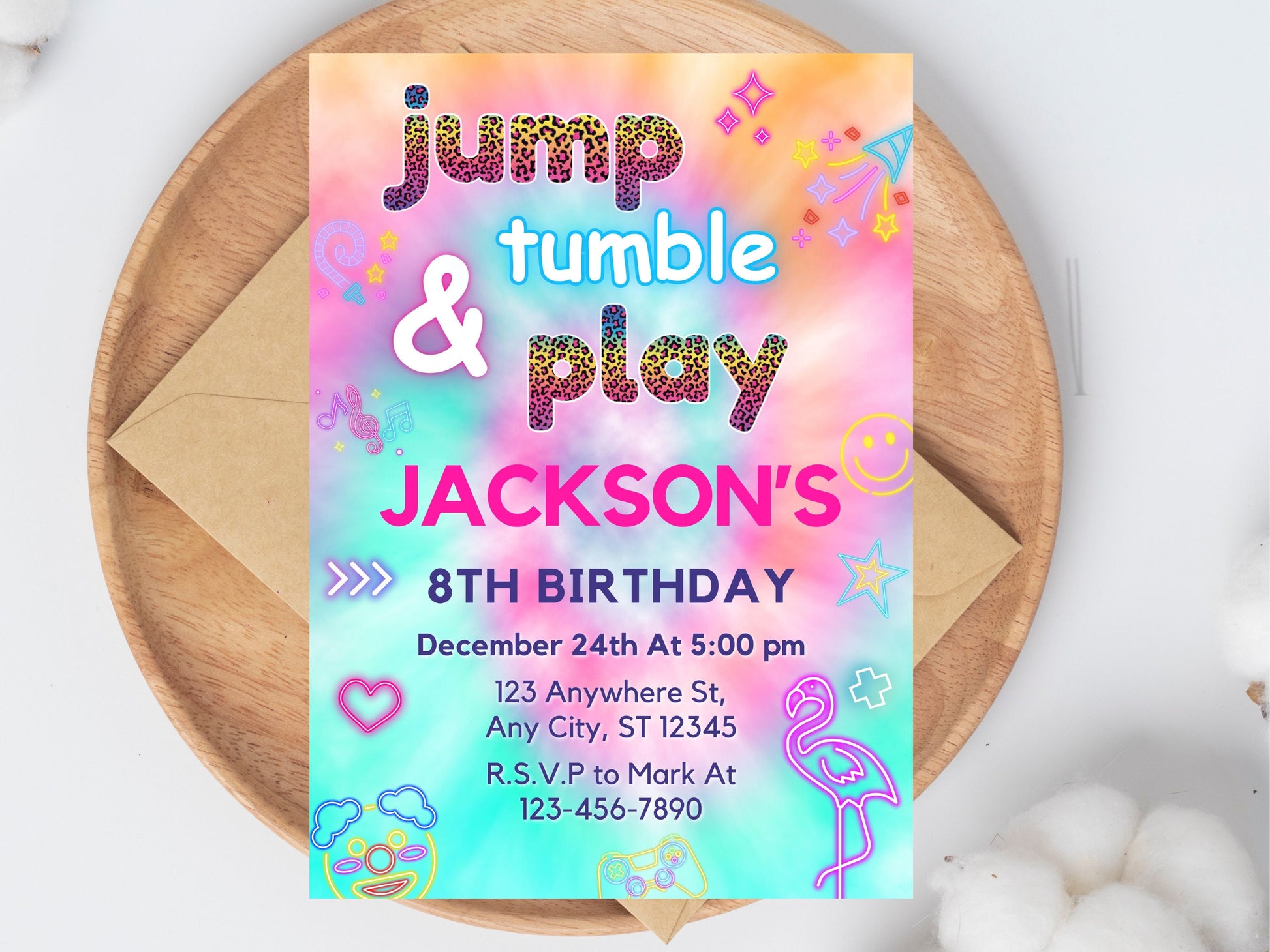 Trampoline Birthday Invitation, Tie Dye Jump Theme (Digital Download)