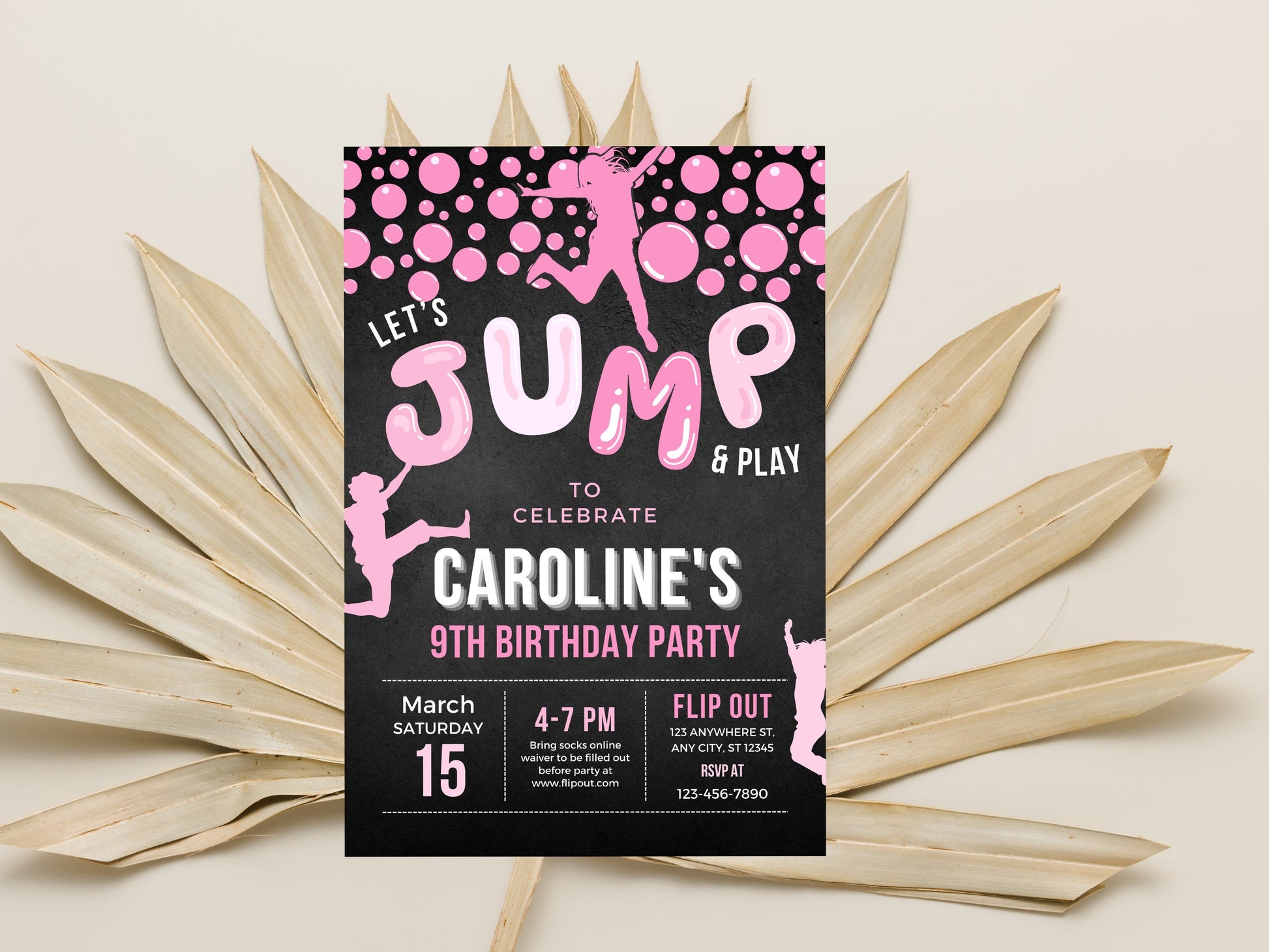 Trampoline Birthday Party Invitation, Editable Jump Template (Digital Download)
